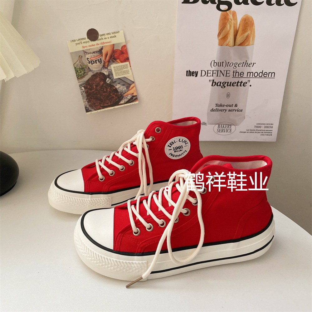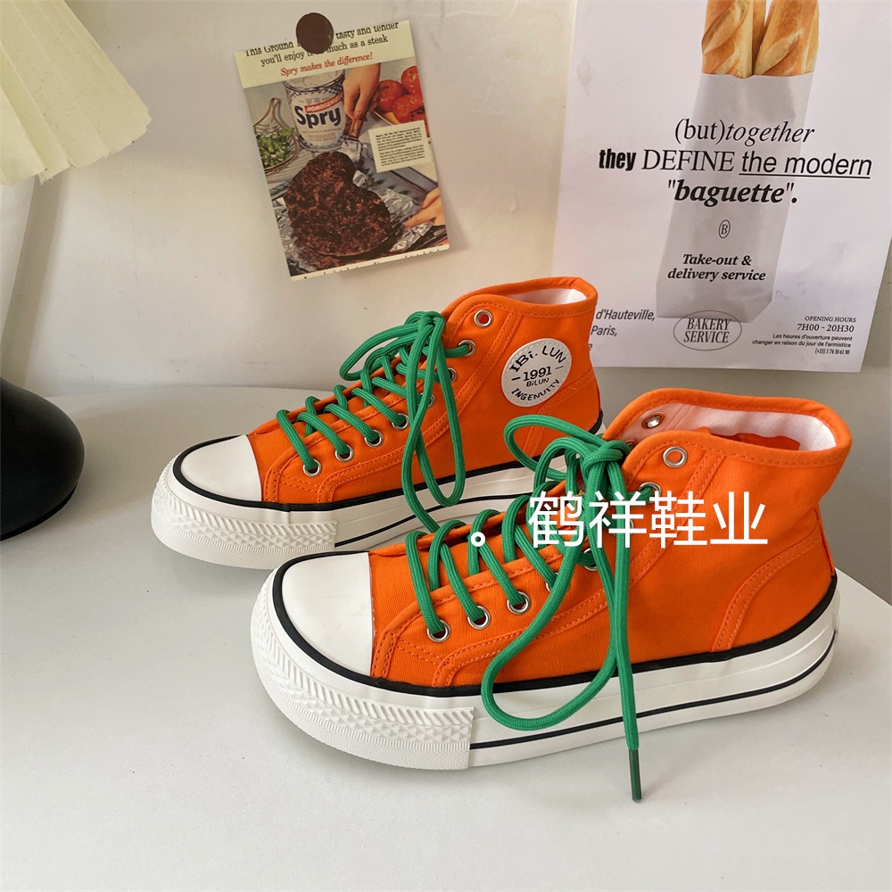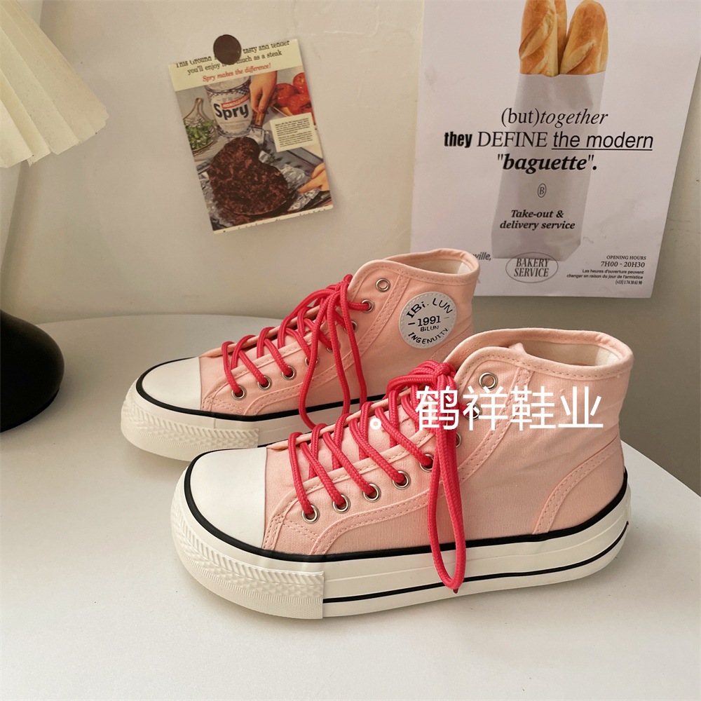 新商品の高助けワイド版マンゴーヘッド韓国版百合スニーカー女性の薄い通気性板靴白靴