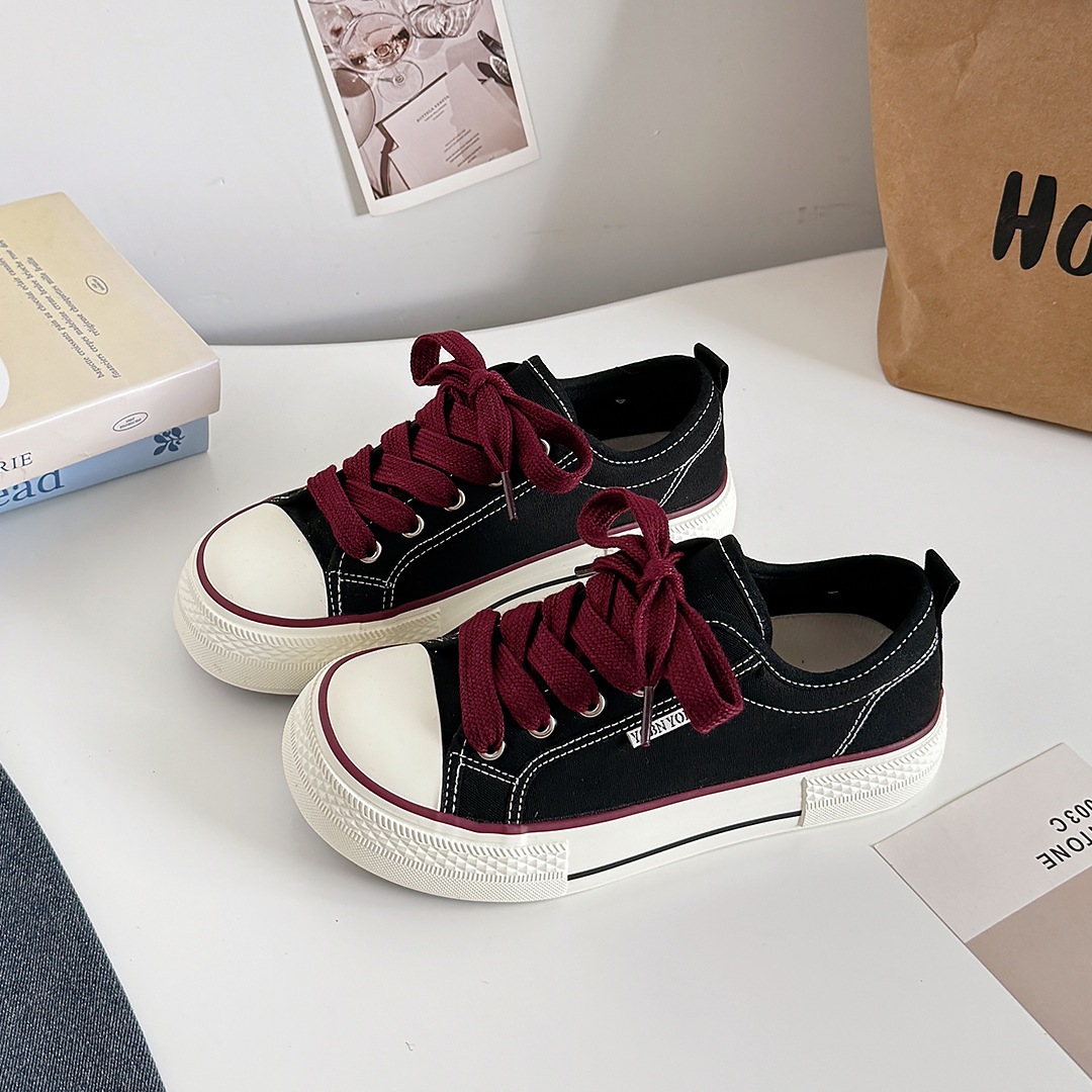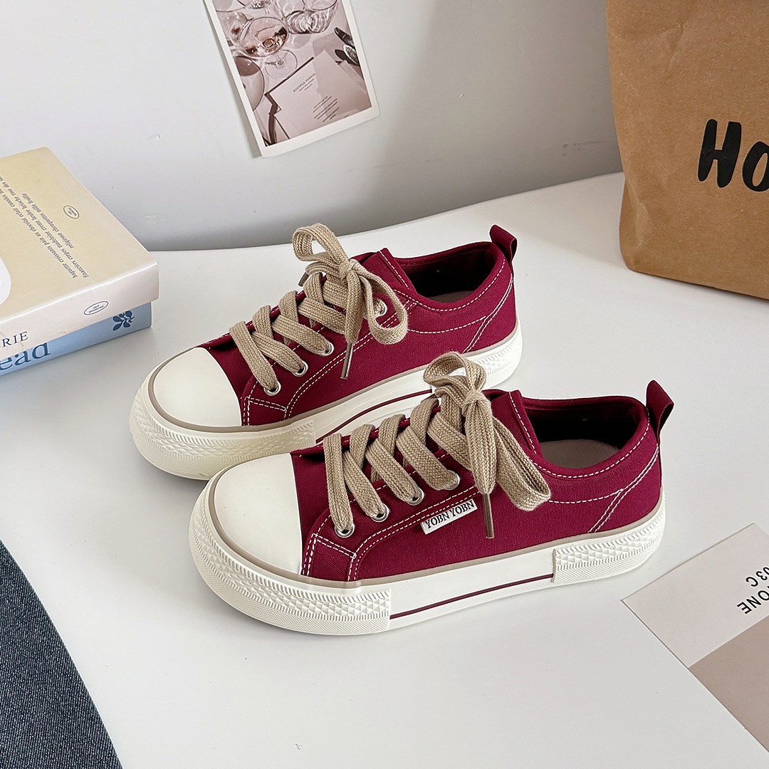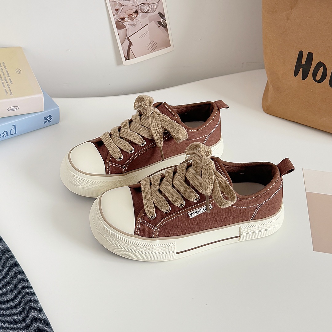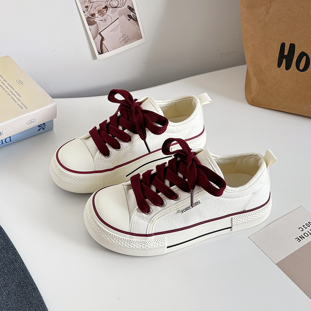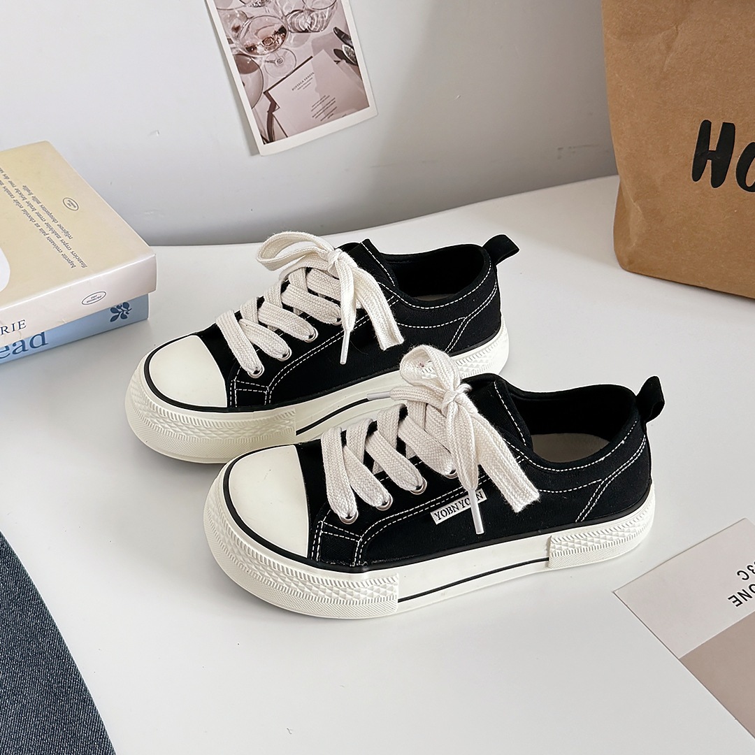 韓国版マンゴーの頭のキャンバス靴の女性の厚い底の白い靴は低いです