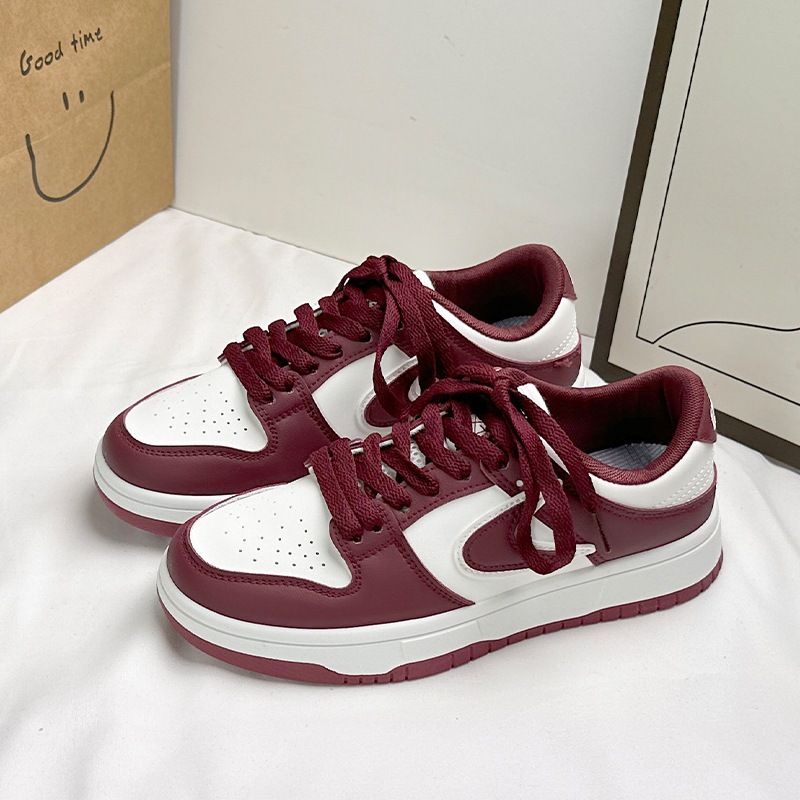 板靴の女性は防水が低いです厚い底のワインレッドの定番モデルで超繊維皮面のスポーツレジャーです