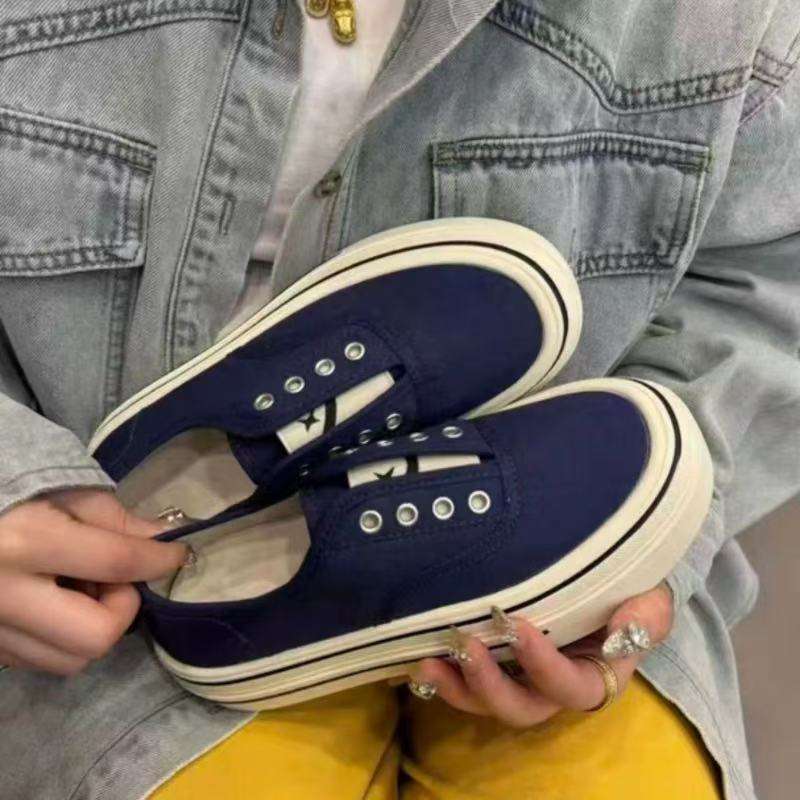 足を踏み入れると厚い底のカジュアルなキャンバス靴が高くなります