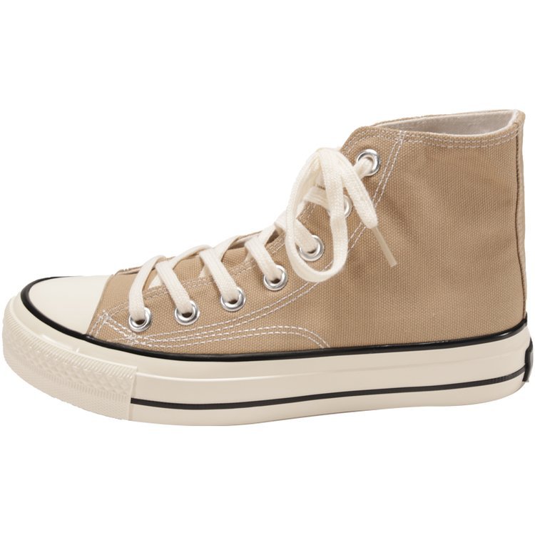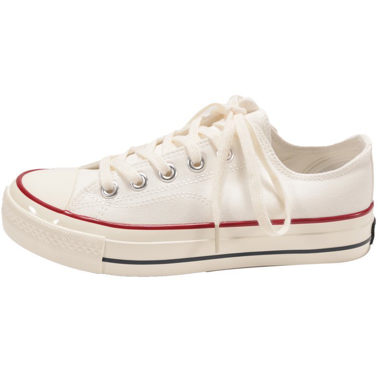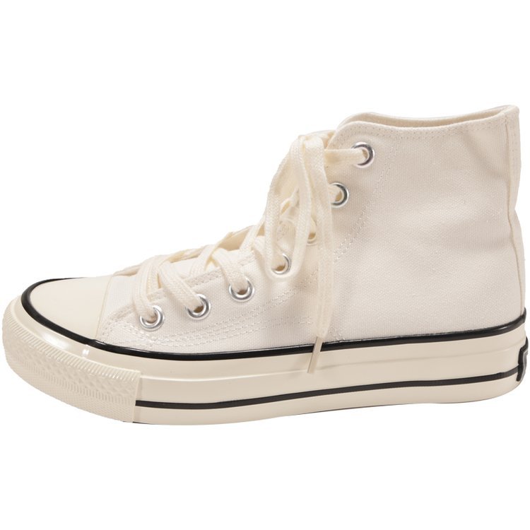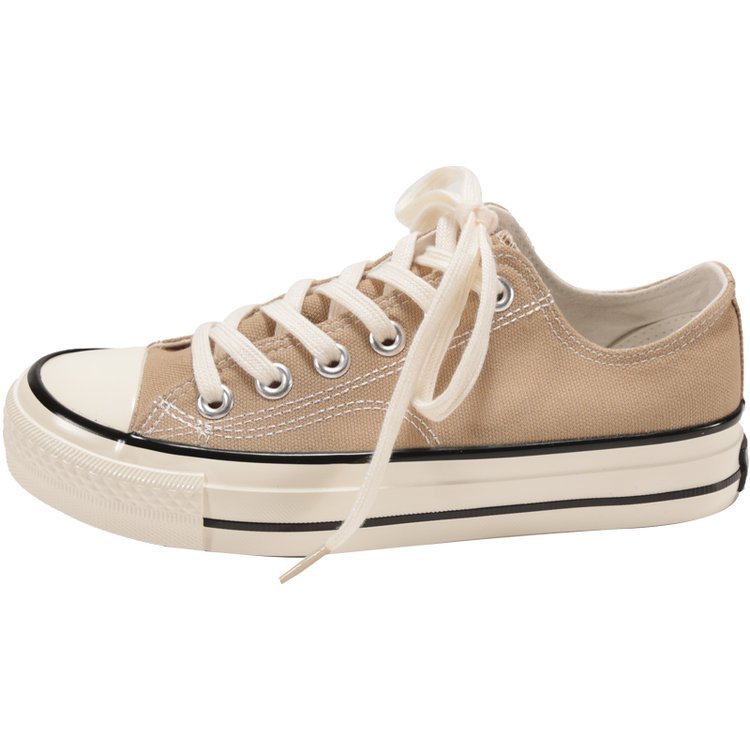 多巴胺春季厚底帆布低帮小白鞋米色女百搭ins超火情侣板