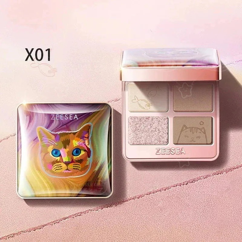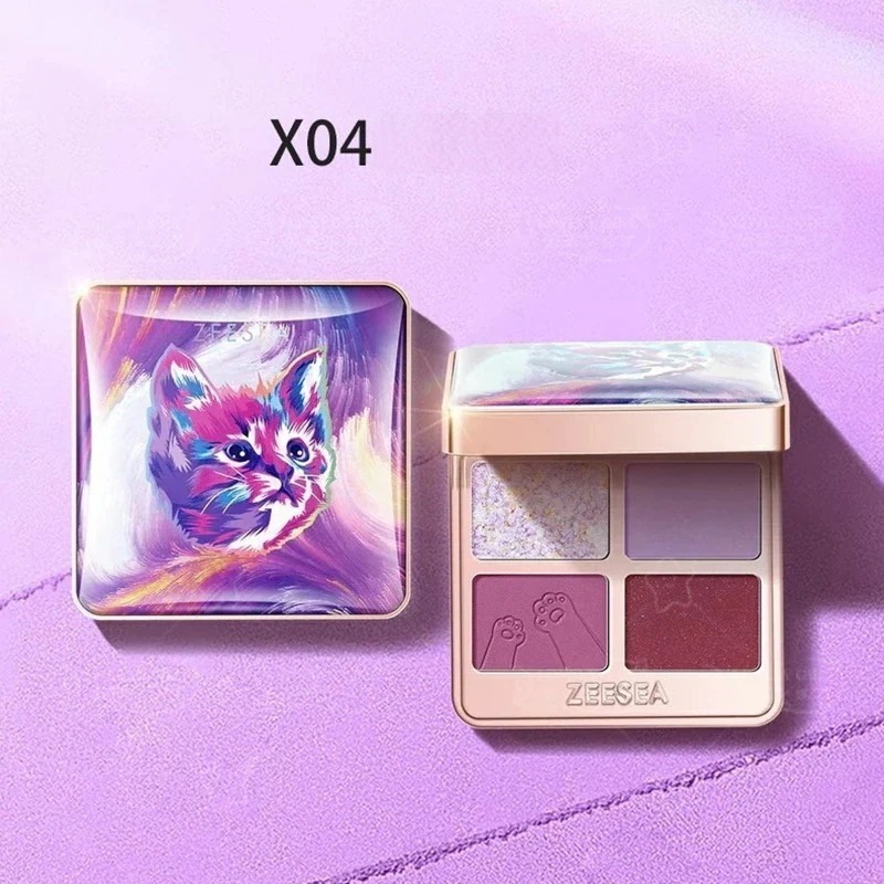 ZEESEAZEESEA【正規品】アイシャドウ 猫 4色 アニマルアイシャドウ 高発色 アイシャドウパレット 夢幻燦爛 ラメ キラキラ アイメイク つや消し 細い閃光 可愛 アイシャドウ ラメ 携帯用 パレット