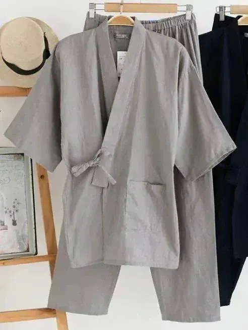 作務衣パジャマウエアメンズ和風パジャマ上下2点セット七分袖と長ズボンの上下2点セットメンズナイ