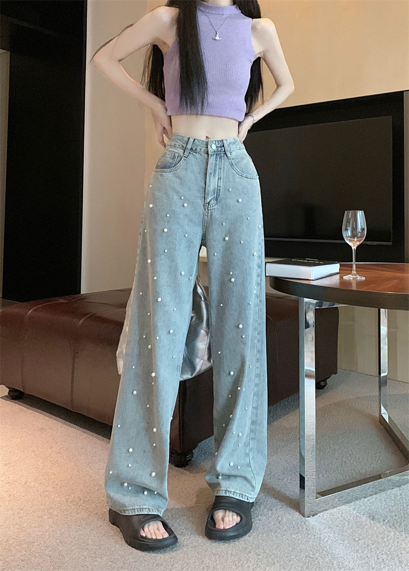 魅力を増すコツ スタイル ロングパンツ ワイドパンツ 真珠 ハイウエスト スリム ジーンズ