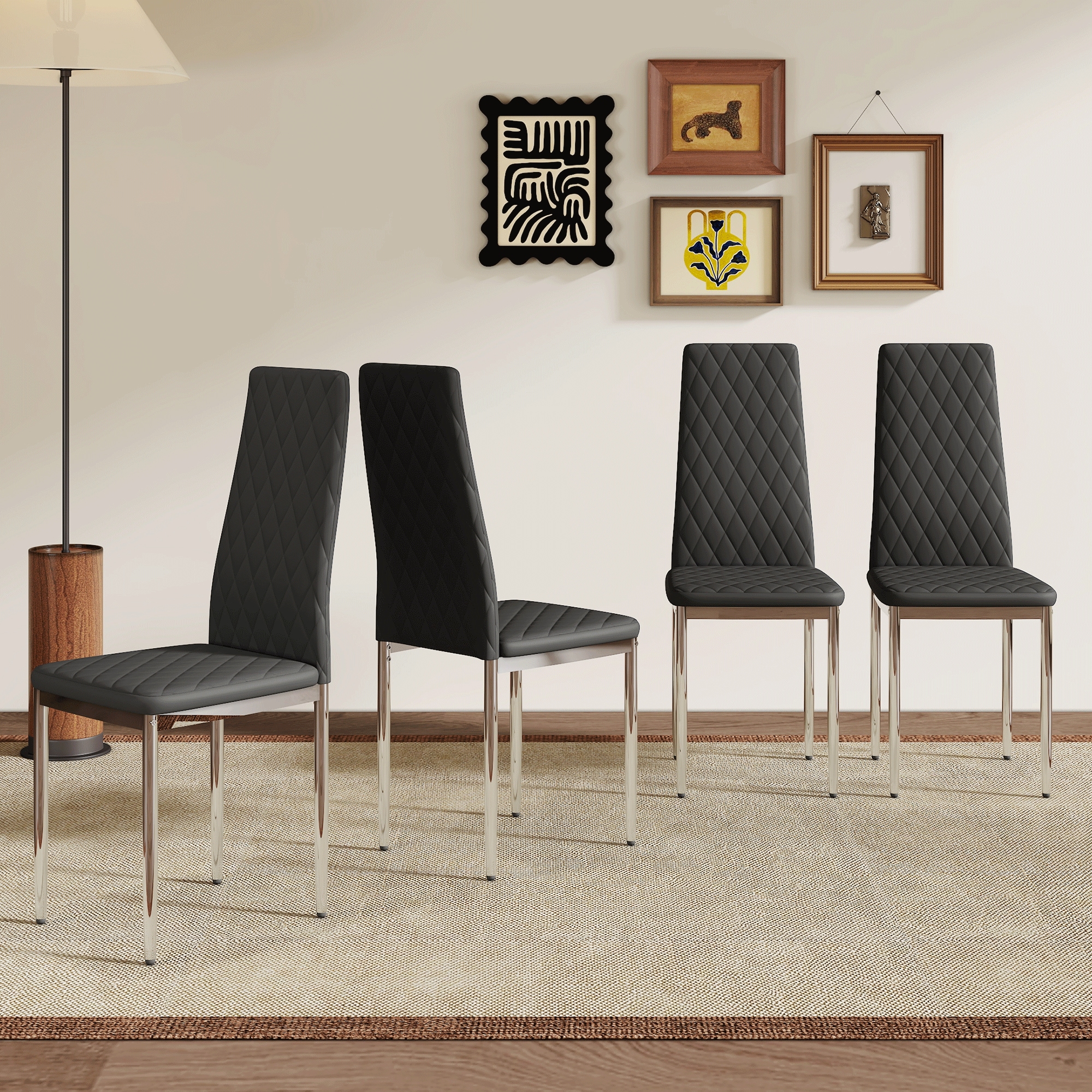 [国内発送!]ダイニングチェア 4脚セット レザー メッキ脚 椅子 イス 食卓椅子 菱形 レトロ 北欧 コンパクト リビングチェア
