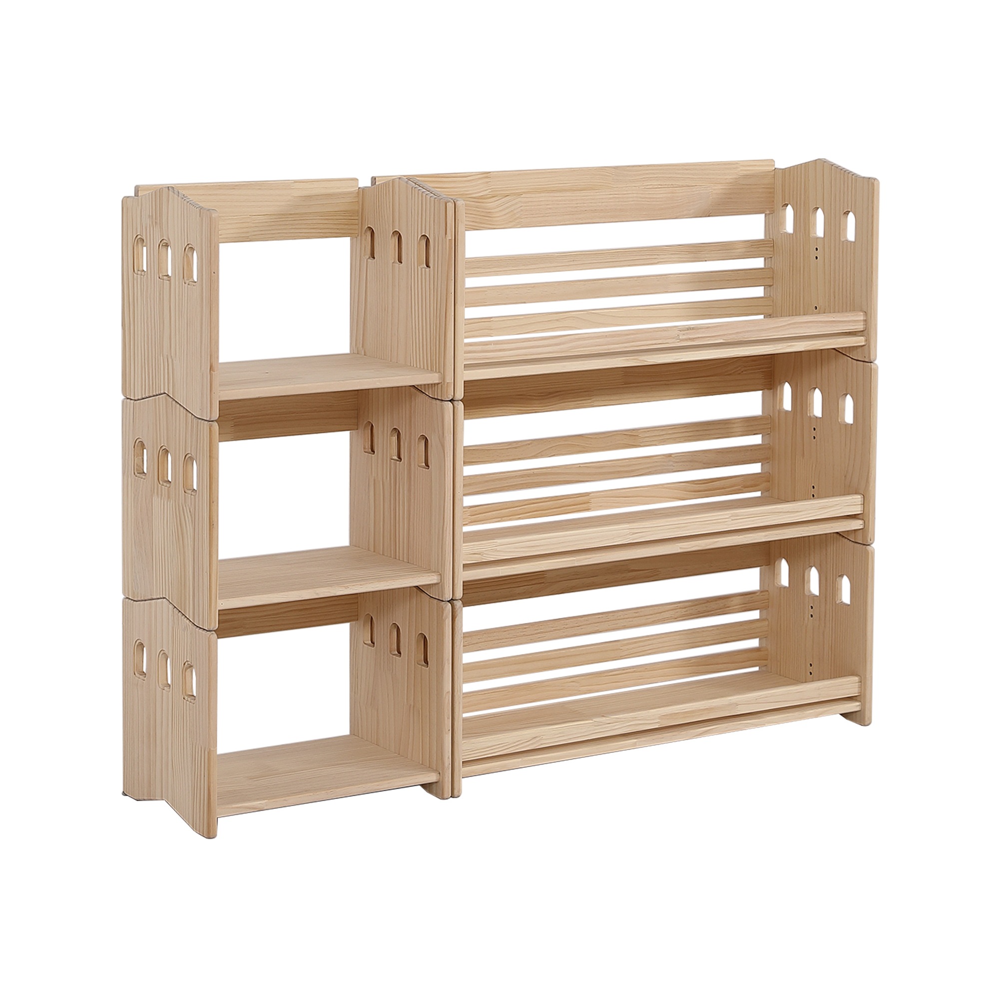 [国内発送!]【絵本棚+収納ラック-3段】組み合わせ自由自在 本棚 ブックシェルフ おもちゃ箱 天然木製 オープンラック ランドセル対応 おもちゃラック 絵本棚 三段 四段 分割使用 おもちゃ収納 飾