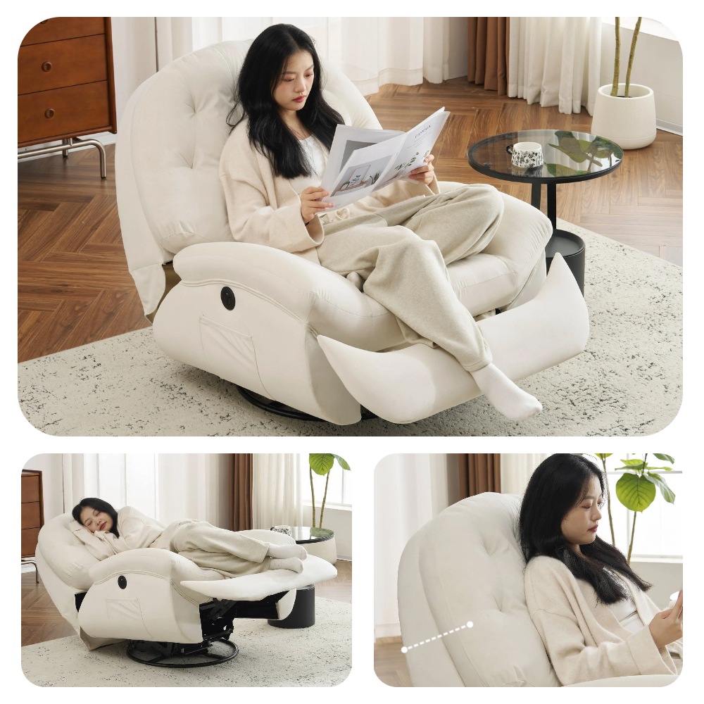 [国内発送!]電動1人掛けソファー リクライニングチェア ゲーミングチェア リクライニングソファ 電動ソファ ベルベット 貝殻のデザイン 270度回転式 背もたれ調節105-165度 簡単昇降ボタン