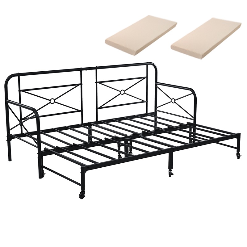 [国内発送!]【マット2個付き(幅70cmベージュ )】 パイプベッド シングルベッド ソファベッド 伸長式ベッド セミシングル シングル セミダブル ダブル 長さ200cm 北欧 おしゃれ 2way