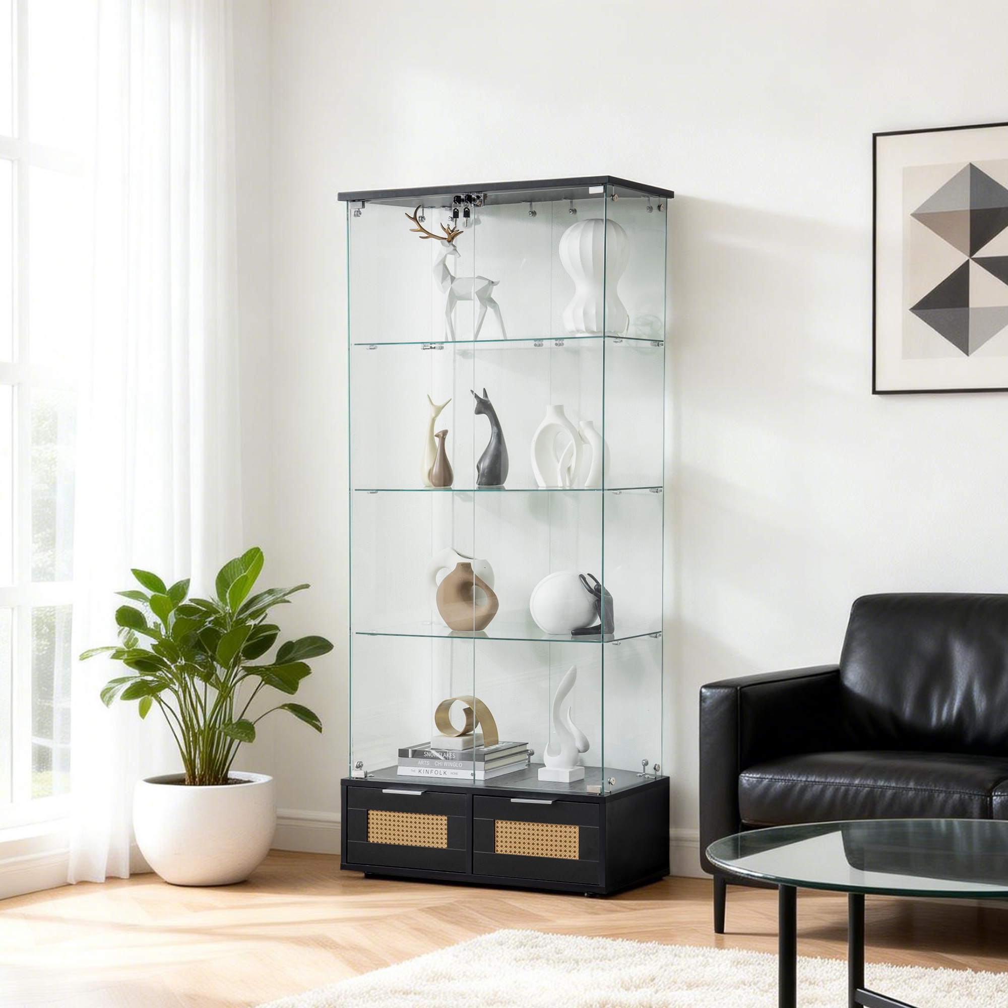 [国内即発送]1691コレクションケース 引き出し付き 両扉タイプ 大型 ワイドタイプ ガラスディスプレイキャビネット フィギュアケース 4段 強化ガラス 全面ガラス サイズ:幅80.5×奥行36.5