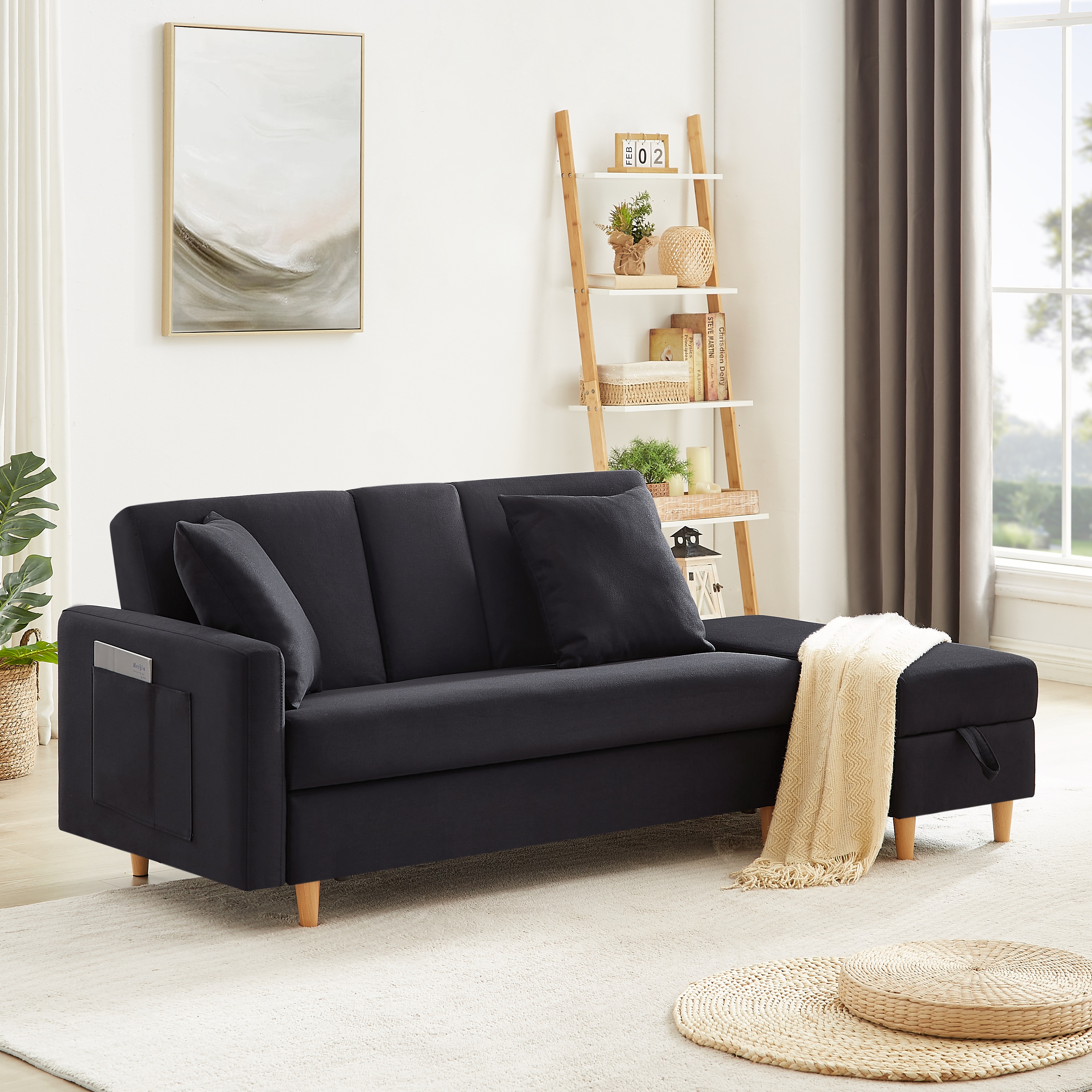 [国内即発送]1696ソファ ソファーベッド カウチソファ 3人掛け オットマン付き 多機能ソファ 左右側とも取り付けるアームレスト たくさん収納 レイアウト自由 クッション2個