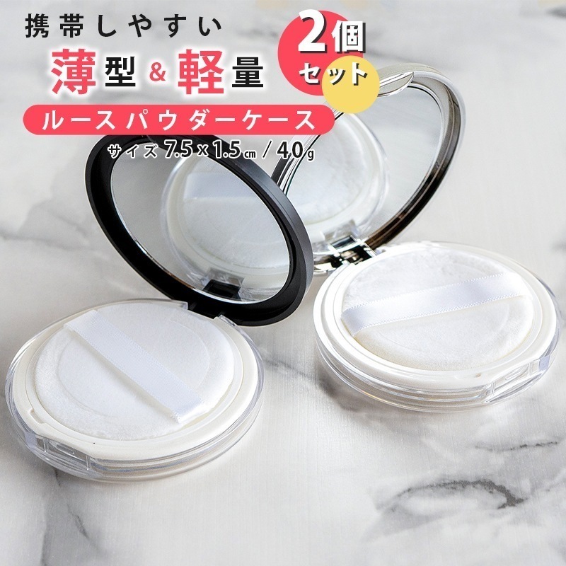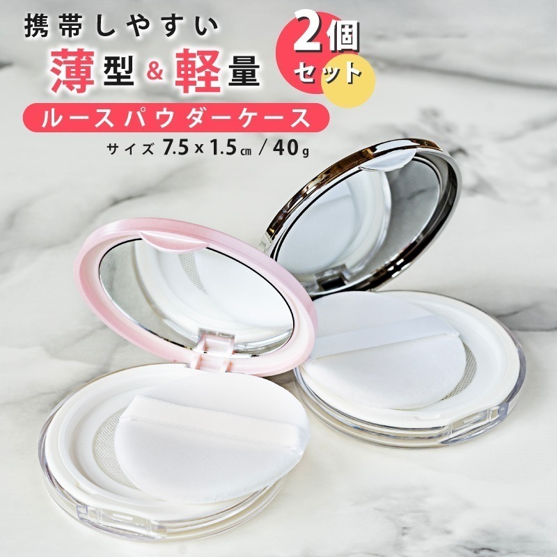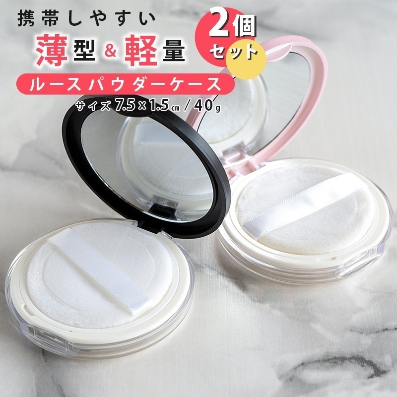 お得な2個セット ミラー付き ルースパウダーケース コンパクトパウダーケース パウダーケース スポンジケース 持ち運び パフケース 化粧パフ ケース