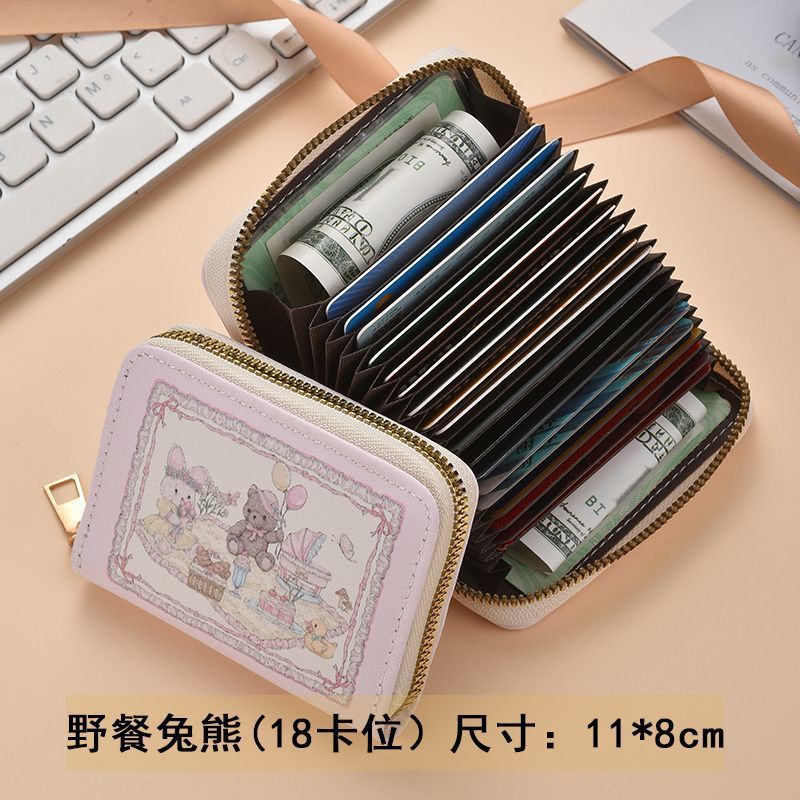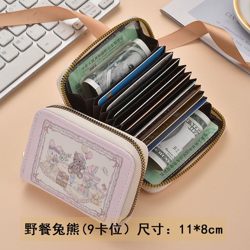 春のピクニック うさぎ クマ シリーズ オリジナル 乙女心 可愛い 多カード収納 多機能 カードケース 磁気防止 カードケース 女子