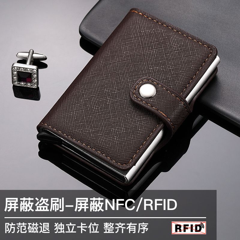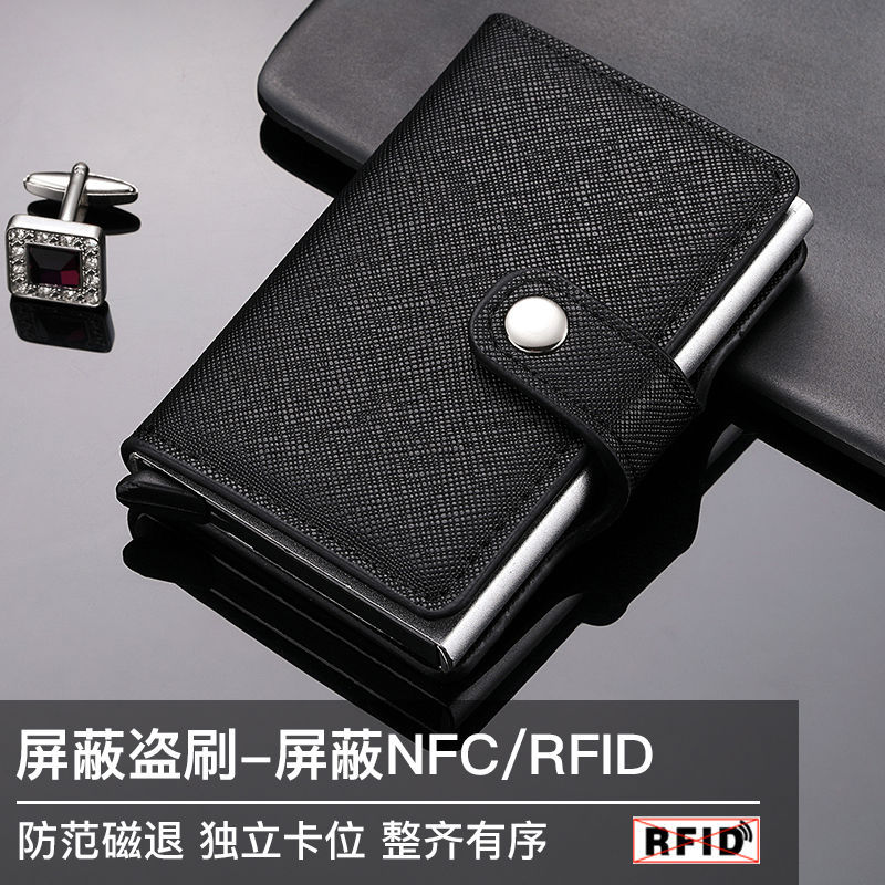 盗難防止 メタル カードケース RFID プッシュ クレジットカード アルミ合金ケース 財布 メンズ カード収納 銀包 カード レザー