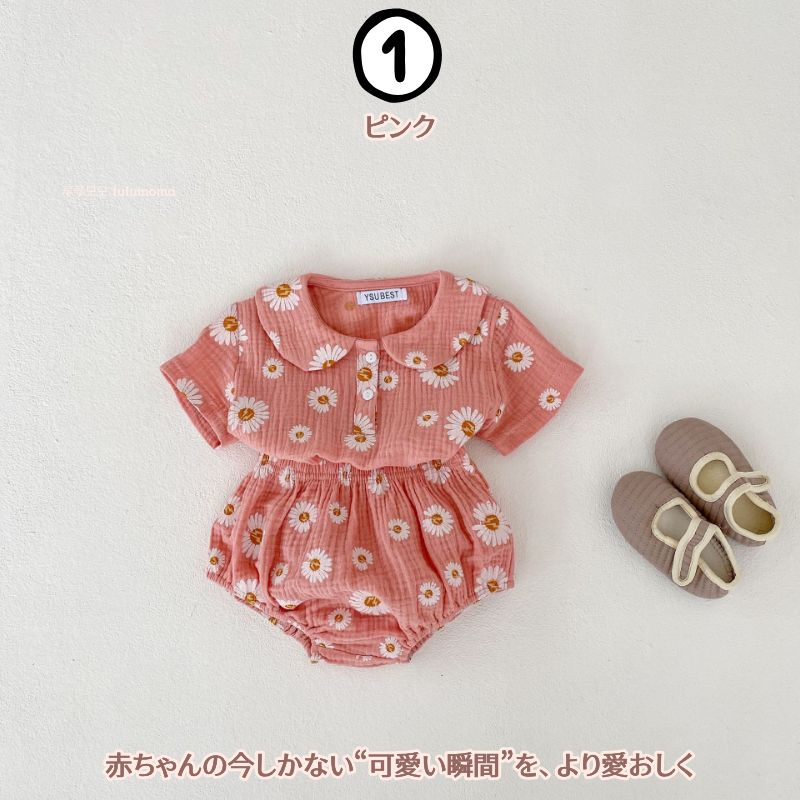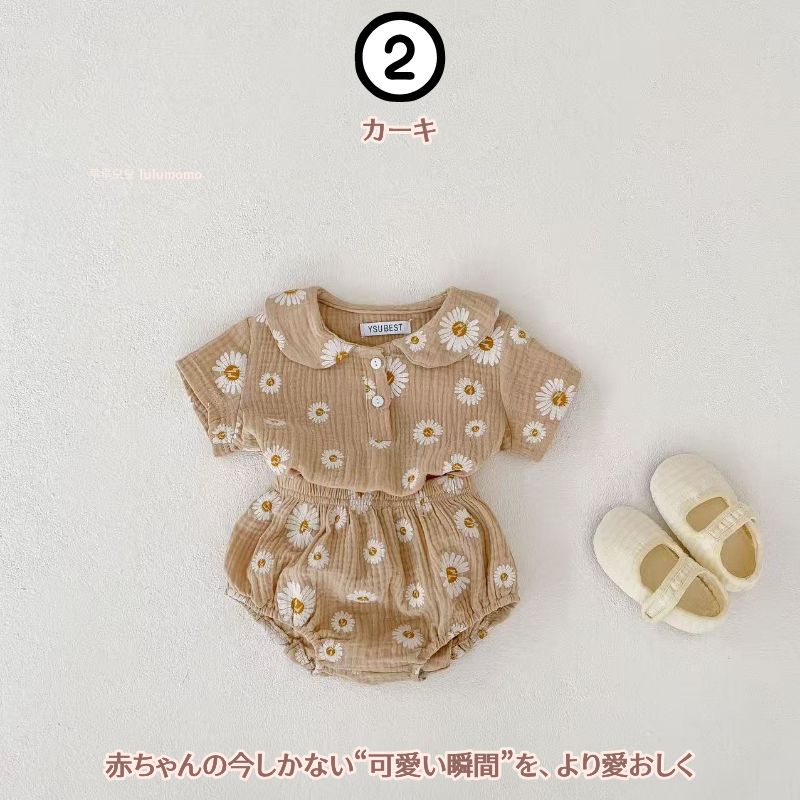 【デイジーの香り上下セット】半袖 春夏 ベビー服 子供服 キッズ服 夏服 ポロシャツ 新生児 男の子 女の子 キッズ 赤ちゃん ギフト 韓国 ベビー用品 プレゼント ジャンプスーツ ショートパンツ