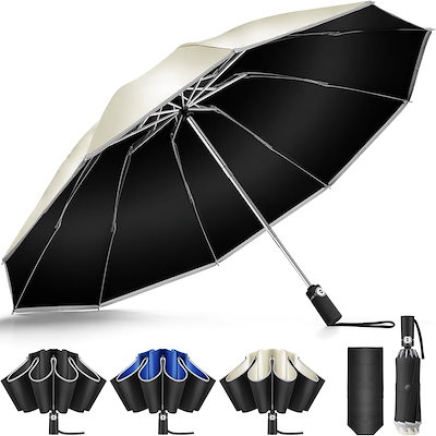 逆折り式10本骨×超撥水折りたたみ傘 ワンタッチ自動開閉 メンズ レディース兼用 耐風・豪雨対応台風対策可広幅105cm大きい 反射テープ付き 遮光99%・UVカット99% 男子日傘 テフロン加工 折