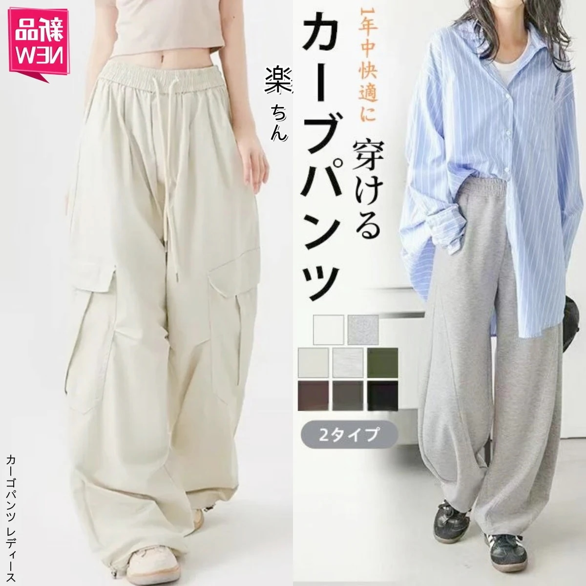 送 料 無 料 カーブパンツ レディース 着痩せ 体型カバー ワイドパンツ ウエストゴム ストレッチ オールシーズン ロングパンツ