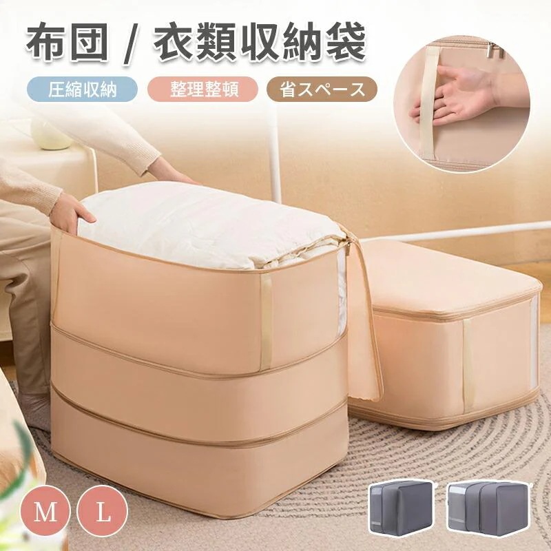 布団圧縮バッグ 羽毛布団収納ケース 羽毛布団圧縮袋 ファスナー式圧縮収納袋 スペース40%節約 布製布団収納ボックス コンパクト 取っ手付き 布団袋 すき間