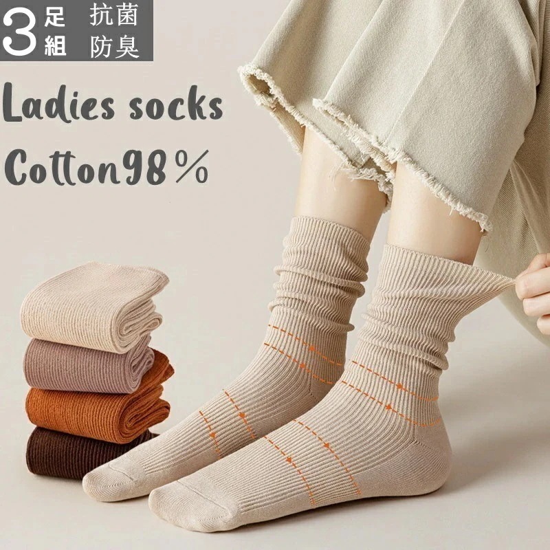 靴下 レディース クルーソックス 3足組 秋 冬 クルー丈 婦人靴下 綿 レディース 無地 コットン ソックス 抗菌 防臭 通勤 通 中厚手ソックス 婦人用 くつした 防寒 カジ