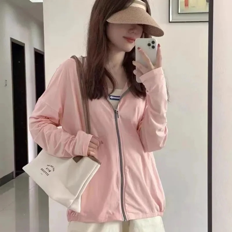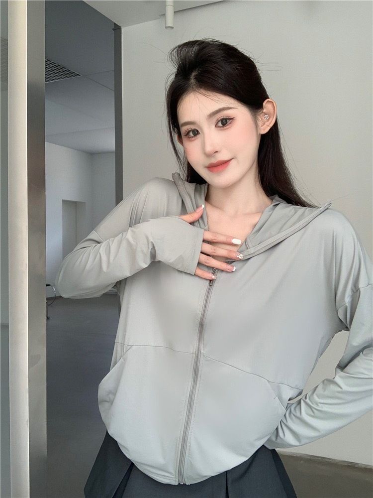 レディース アイスシルク 紫外線カット パーカー 落肩 長袖 通気 涼感 薄手 ルーズフィット 紫外線対策 自転車通勤 お出かけ 夏服 人気