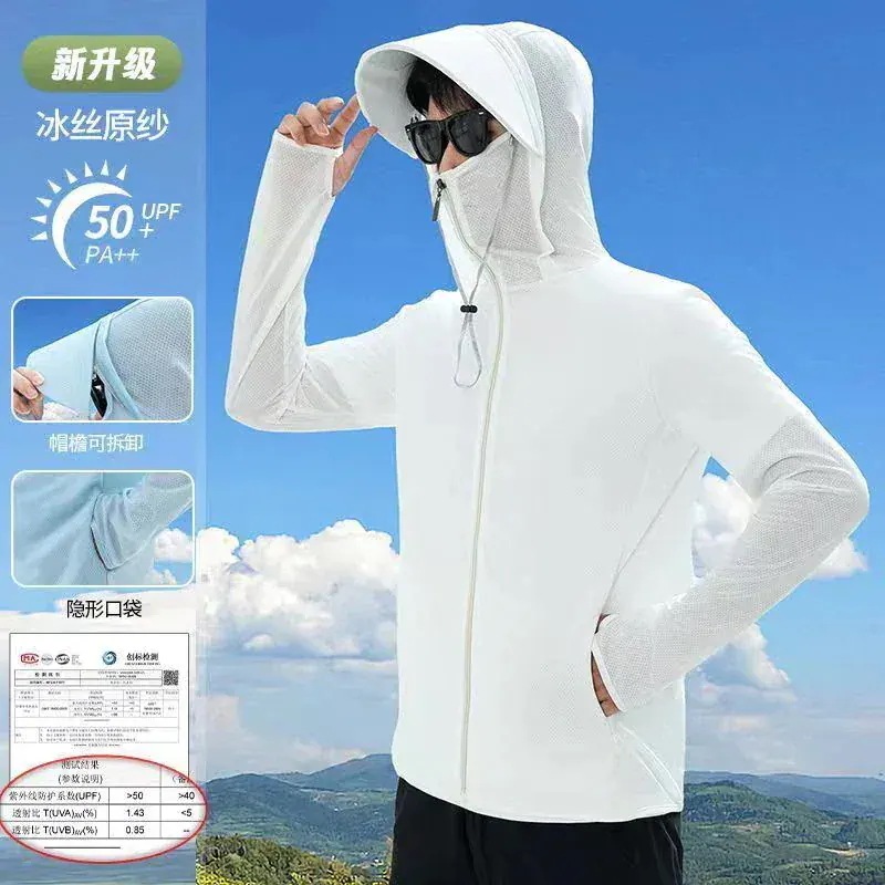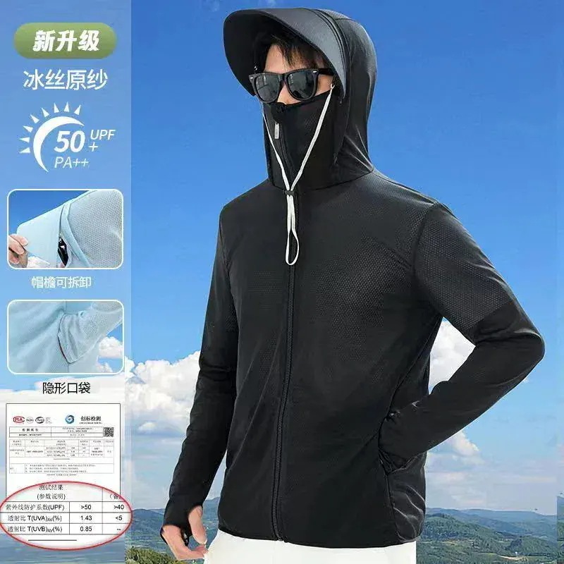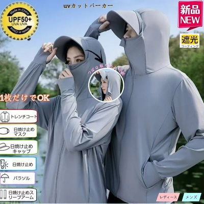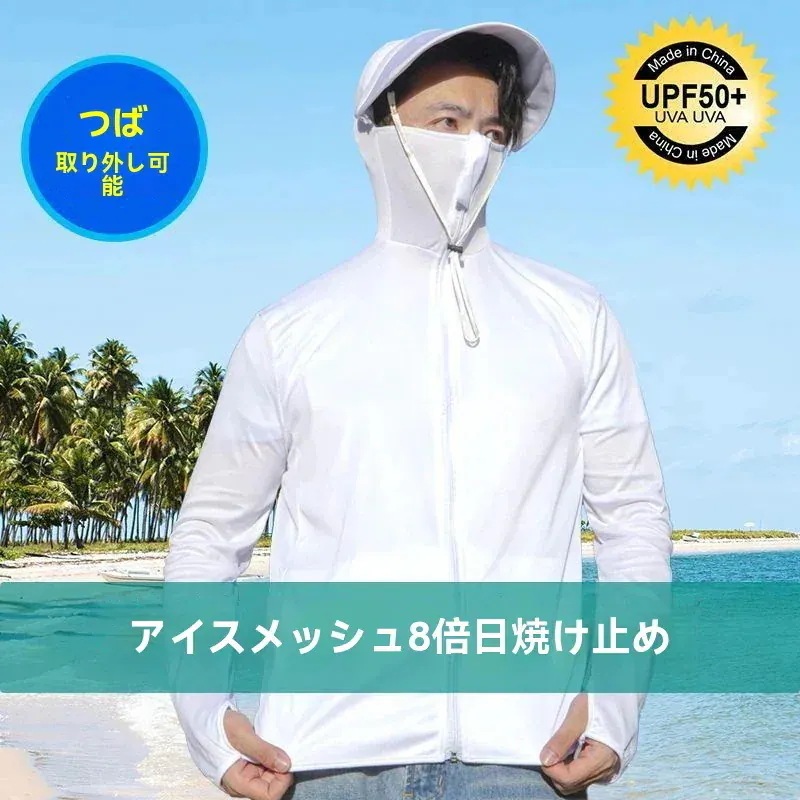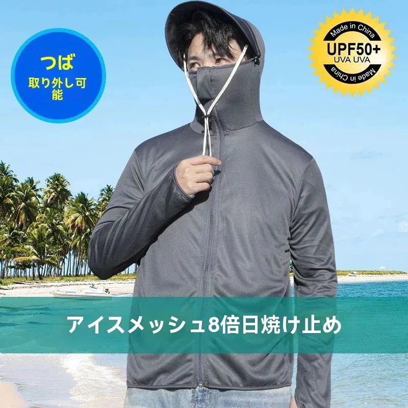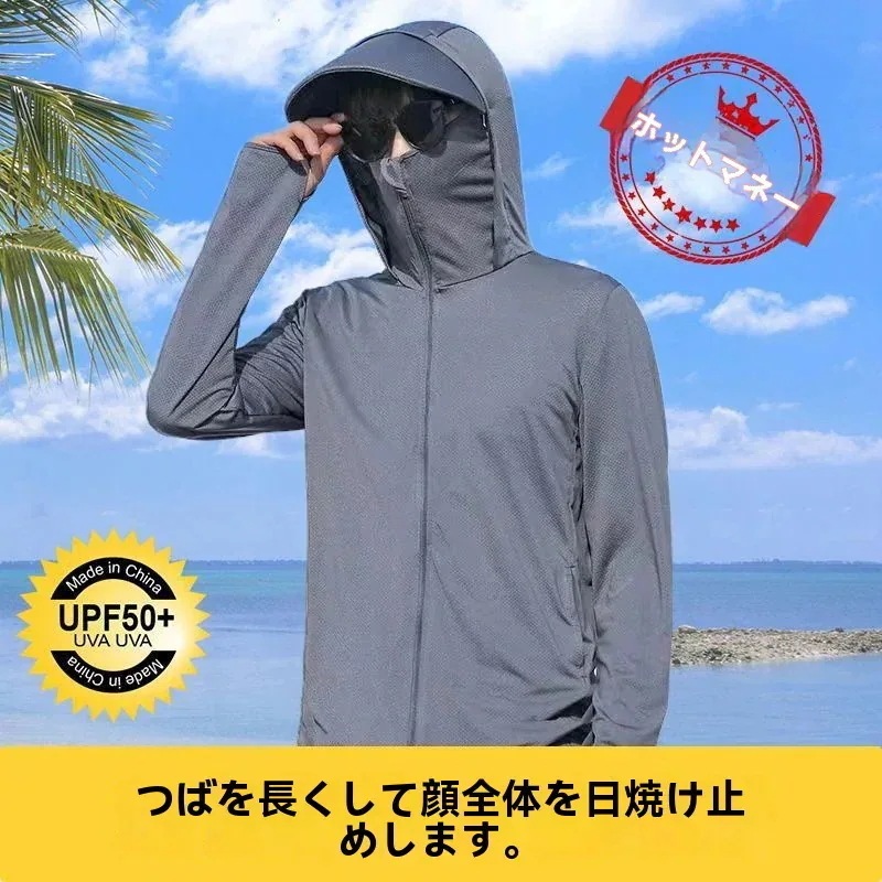 2026新品推奨 UV対策 完全防護uvカットパーカー無地 長袖メンズ レディース 男女兼用 アウター 接触冷感 指穴 つば 取り外し あご紐 調整可能