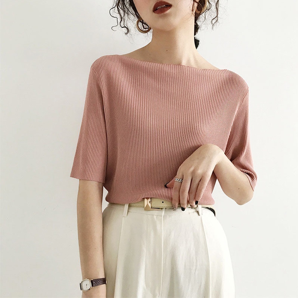 【赤字覚悟 最安挑戦】5分袖リブニット夏服トップス レディース