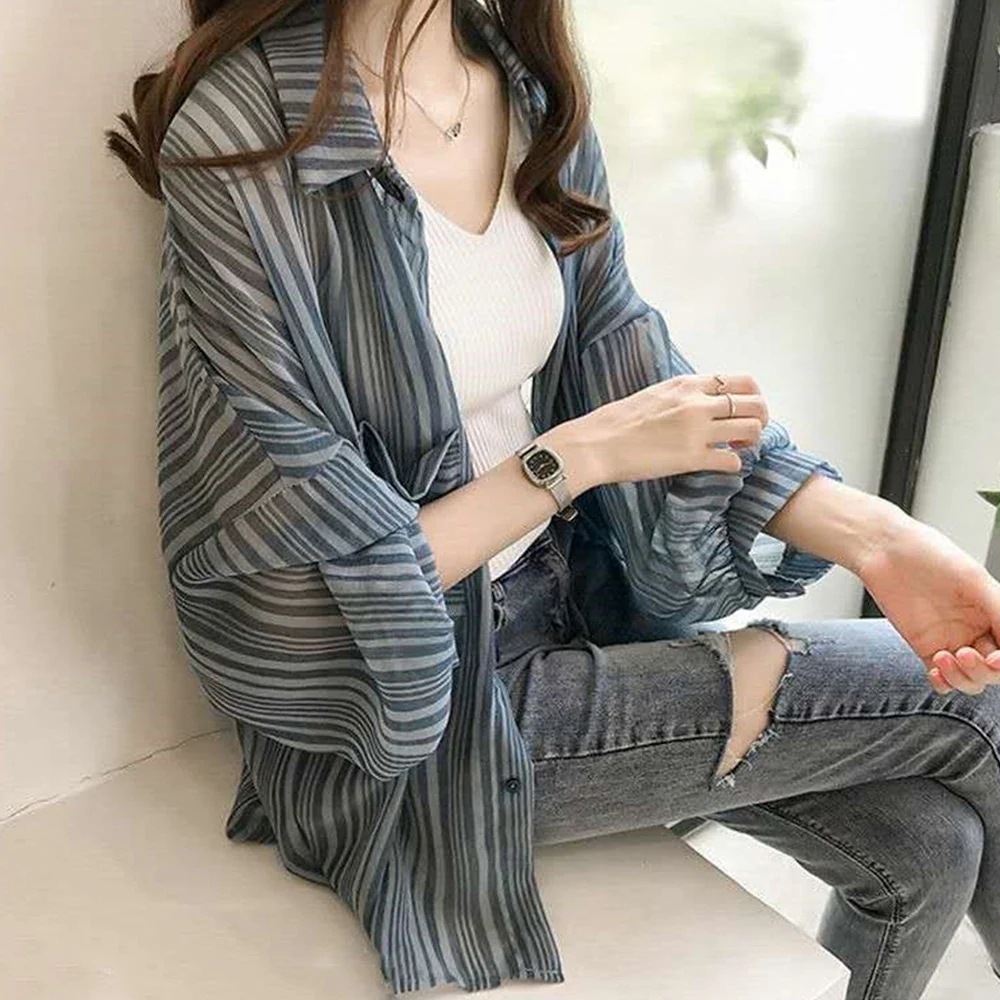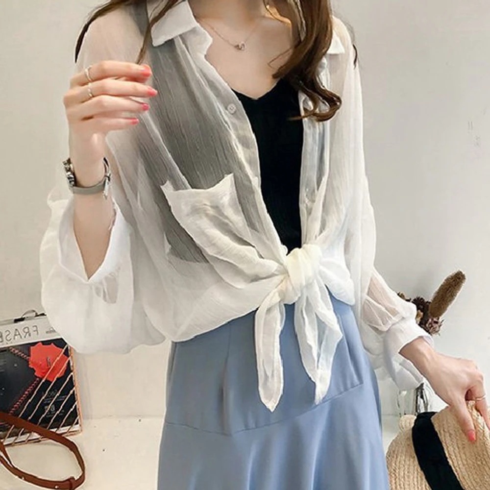 【赤字覚悟 最安挑戦】春夏シフォンシアーシャツ 羽織り 薄手