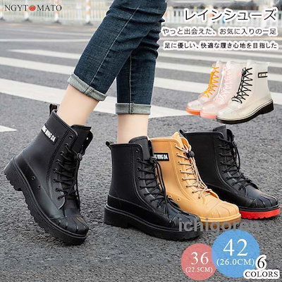 レインブーツ レディース ショート丈 防水 レインシューズ レースアップ スニーカー 歩きやすい カジュアル 滑り止め 耐久性 通勤 通学 梅雨対応 おしゃれ 透明