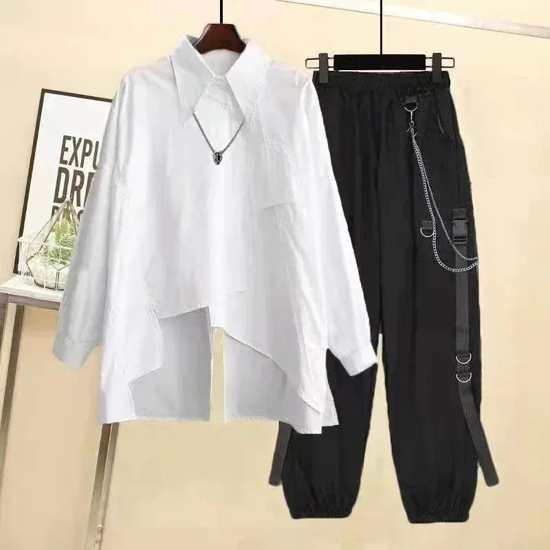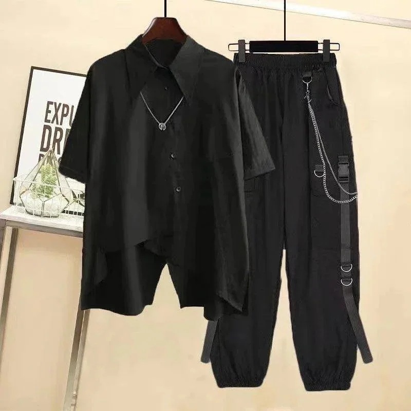 涼しく楽ちんセットアップ 地雷系 男女兼用 韓国メンズファッション 長袖半袖 シャツ+パンツ スポーツウェア レディース 大きいサイズ 点セットスウェット ブラウス