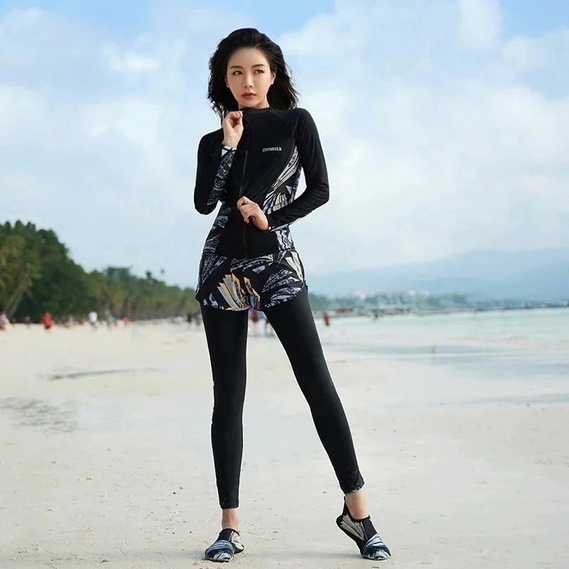 【限量发售!!】体型カバー フィットネスウェア 上下セット 男女兼用 UVカット 長袖ラッシュガード 女性用 水陸両用 三点セット 長袖 サーフィン 新品登場 水着 スポーツウェア レディース