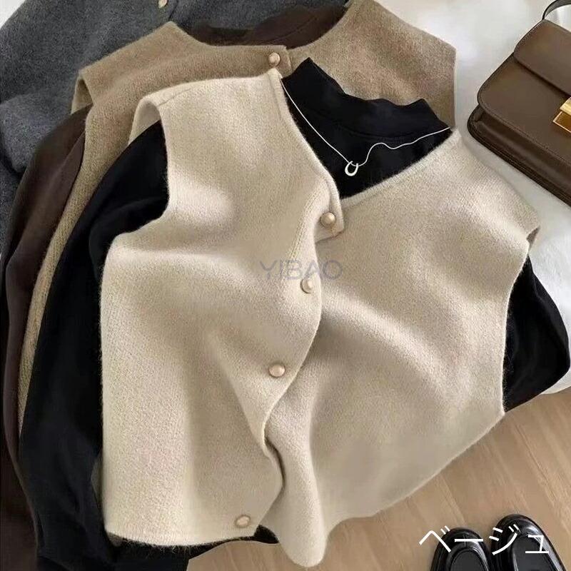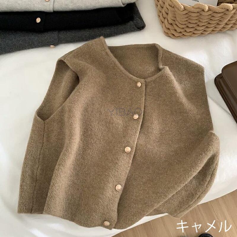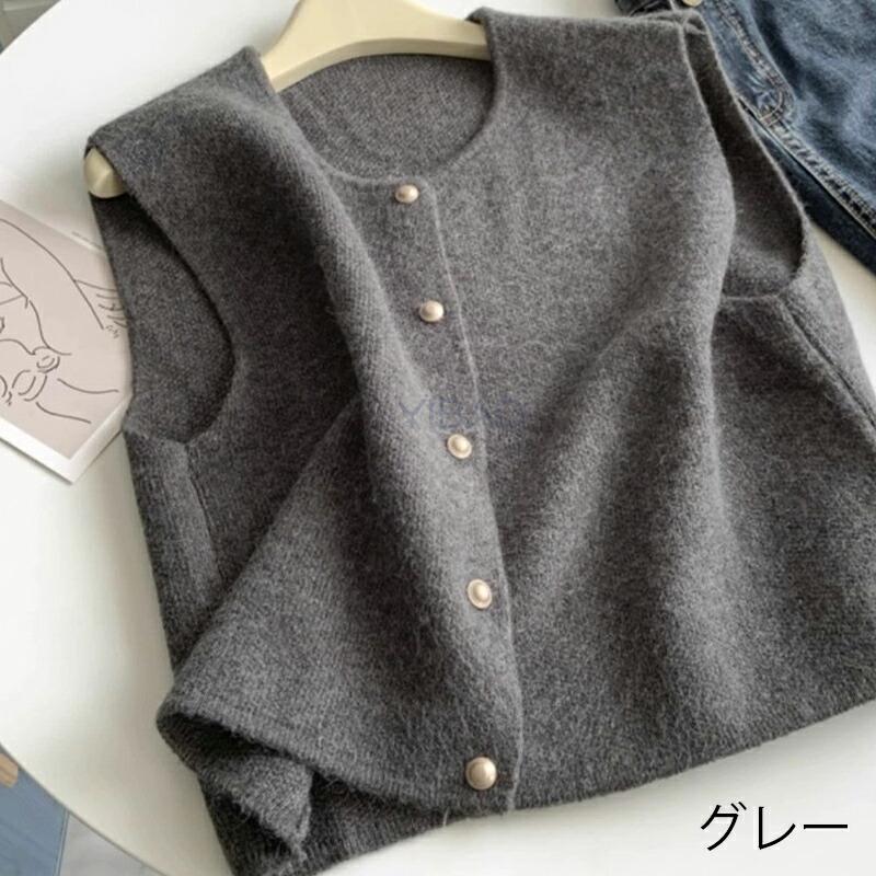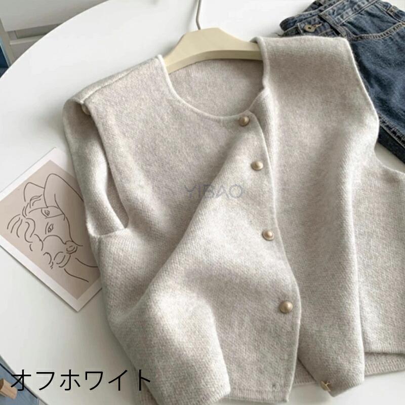 ジレ レディース ニットベスト 春秋 ニットジレ ノースリーブニット カジュアル 前開き 韓国風 ショート丈 春秋冬 ニットトップス 柔らかい ショートベスト 厚手