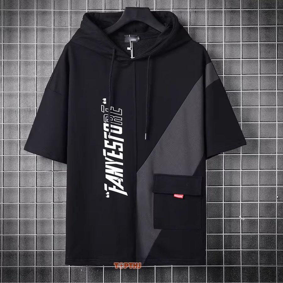 tシャツ メンズ 無地 シンプル フード付き パーカー トップス 重ね着風 オーバーサイズ 七分袖 ユニセックス 通勤 通学 無地 薄手 夏服 パーカー 重ね着風