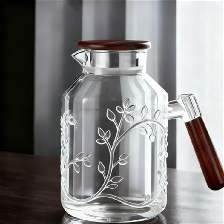 木目調ハンドル付き耐熱ガラス冷水ポット 1800ml 大容量 家庭用ウォーターピッチャー