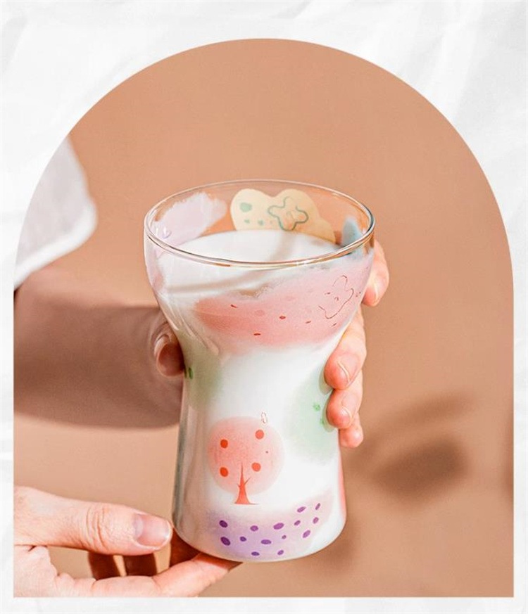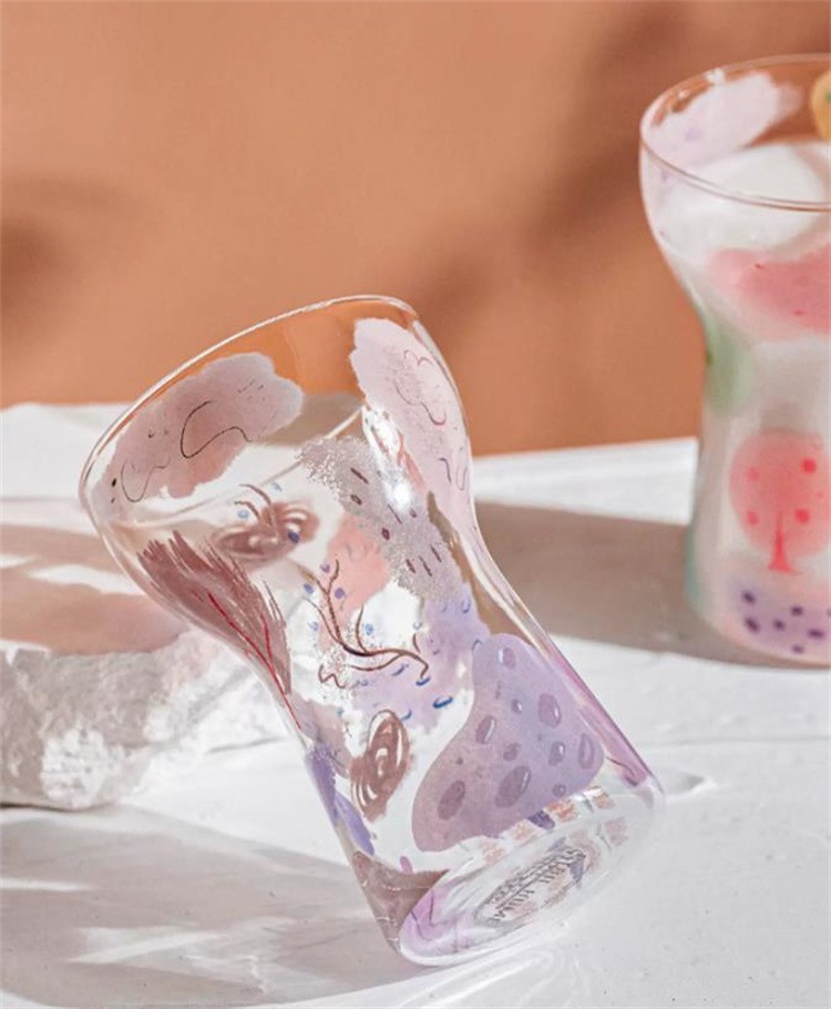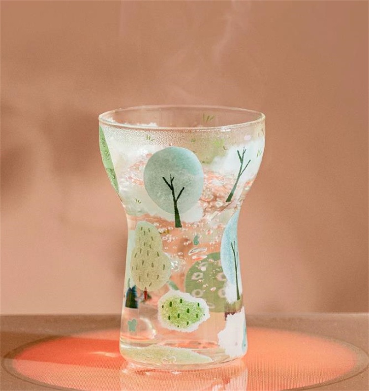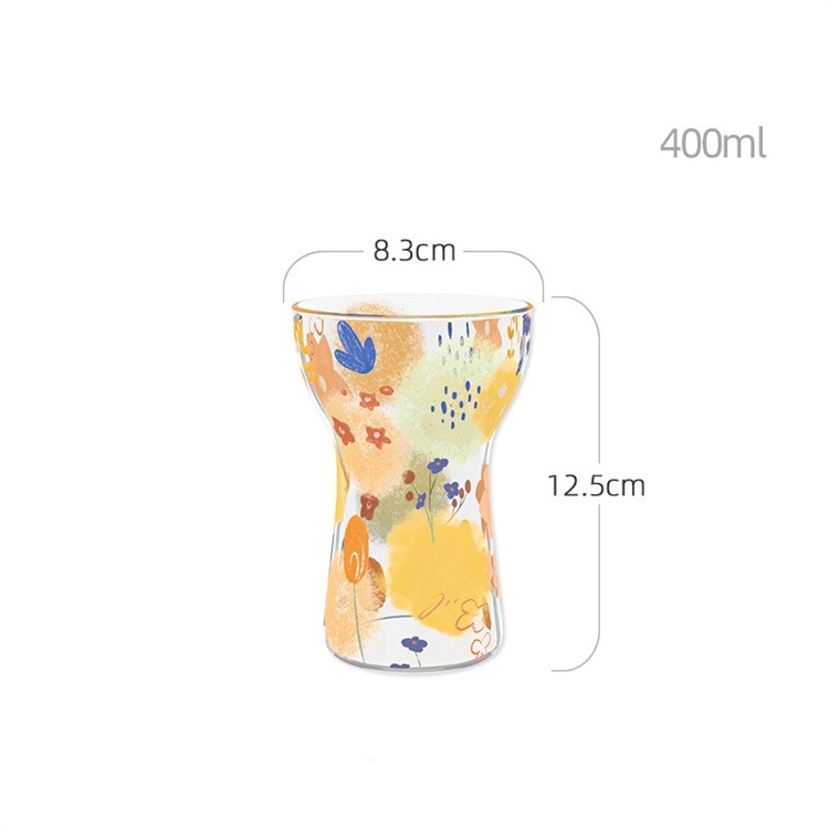 水彩プリント 透明ガラスカップ 400ml