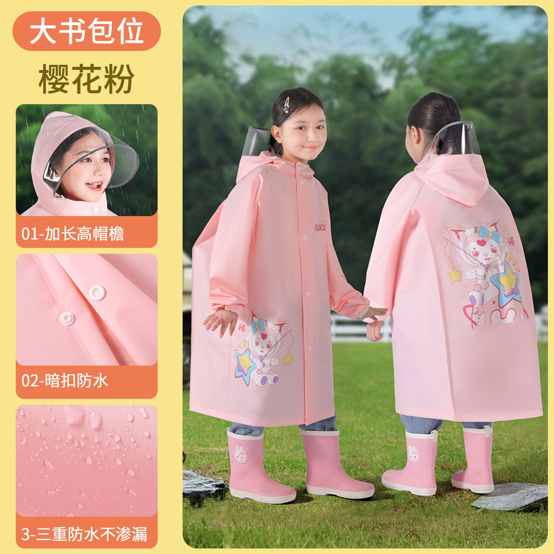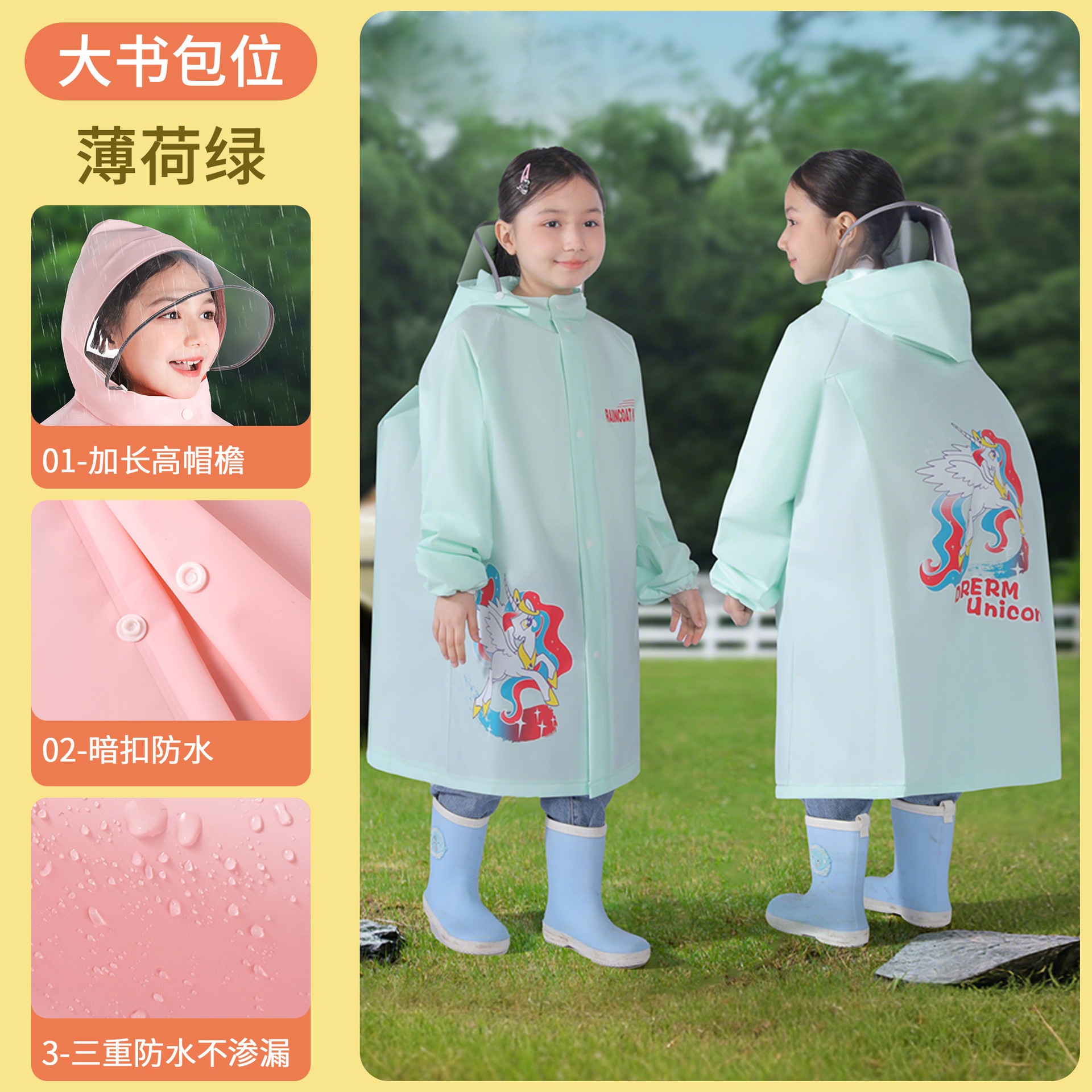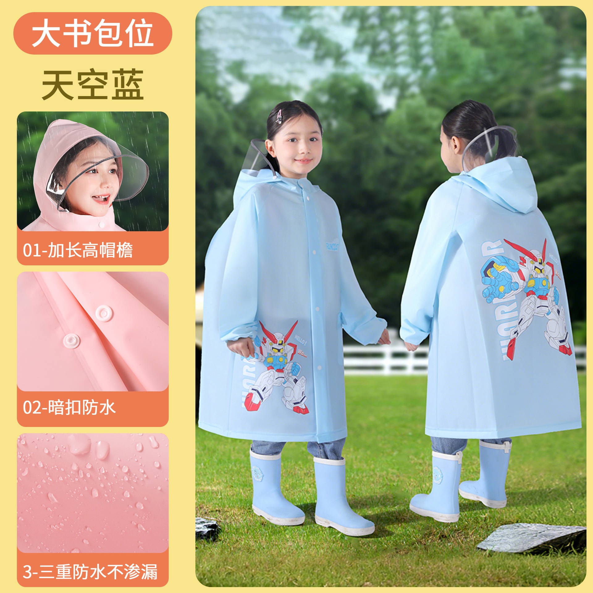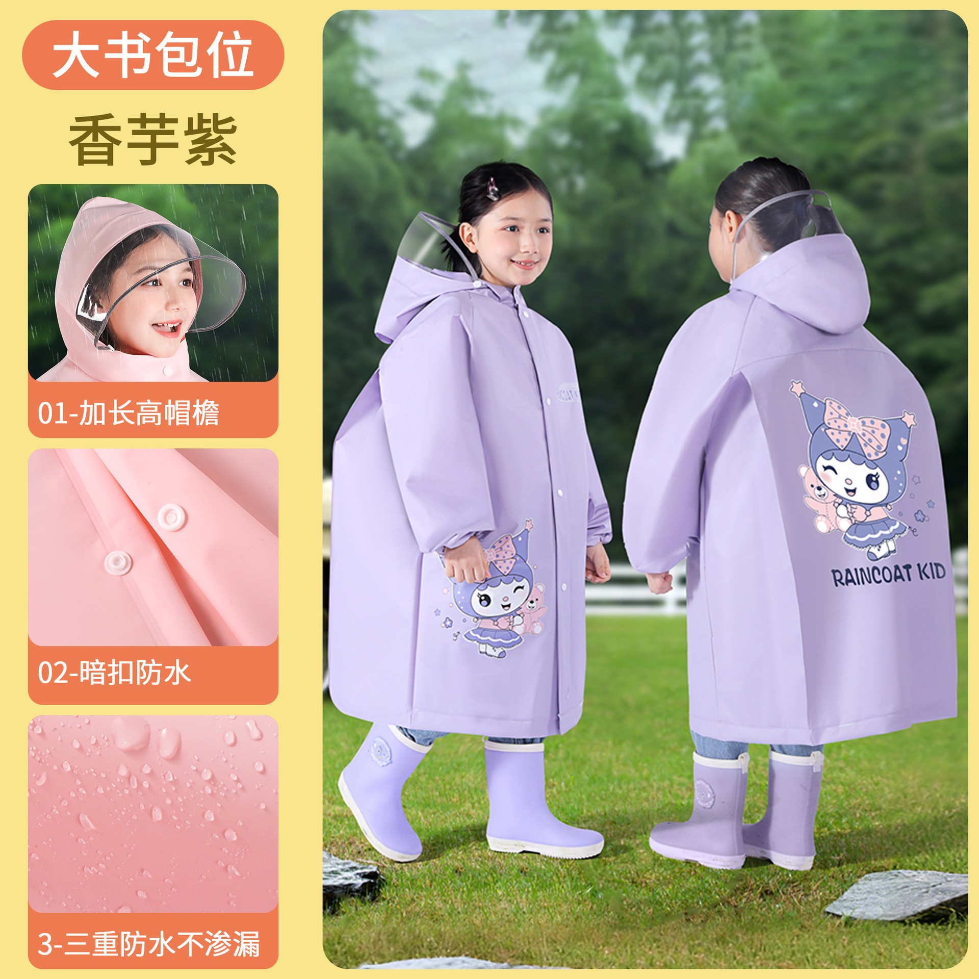 キッズ レインコート 女児 男児 ランドセル 収納スペース 小学生 専用 レインコート 全身 一体式 防暴雨 レインポンチョ