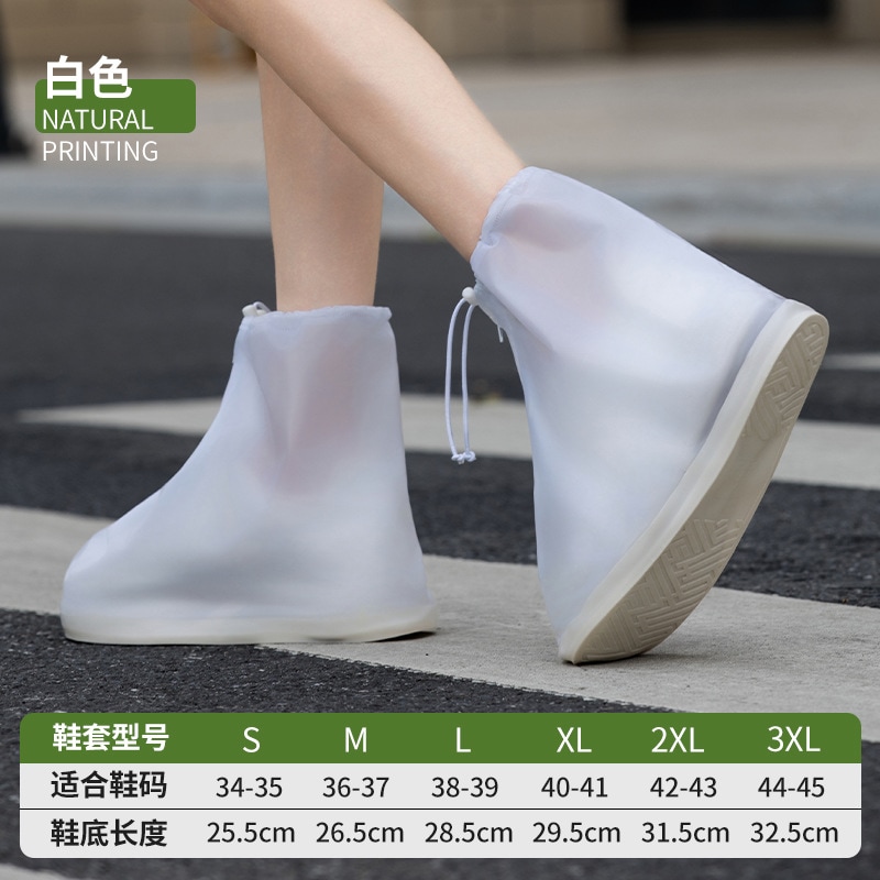 大人用 厚め ミドルカット PVC レインシューカバー 滑り止め 耐磨耗 靴濡れ防止 繰り返し 使用可能 白 包丁加工 レインブーツ
