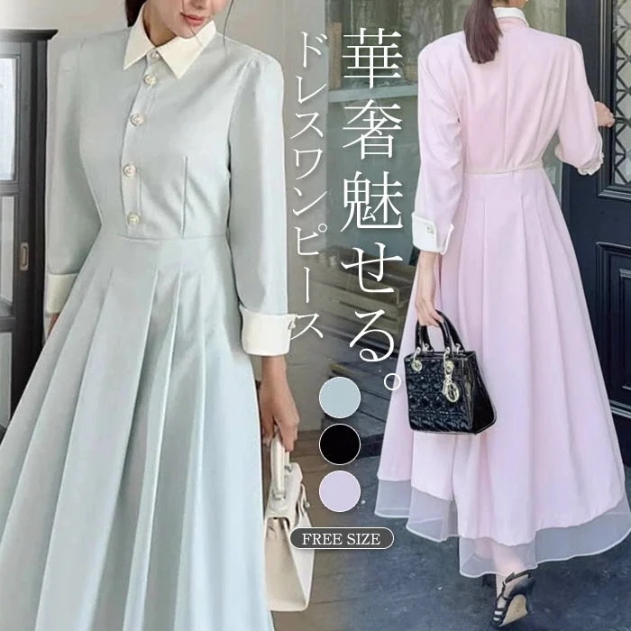 ワンピース 切り替え ロング丈 Aライン レディース ワンピース ドレス ゆったり 可愛い 春 ワンピース 長袖 春 秋 大人可愛い カジュアル きれいめ 着痩せ シンプル 華やか 通勤 OL 卒業