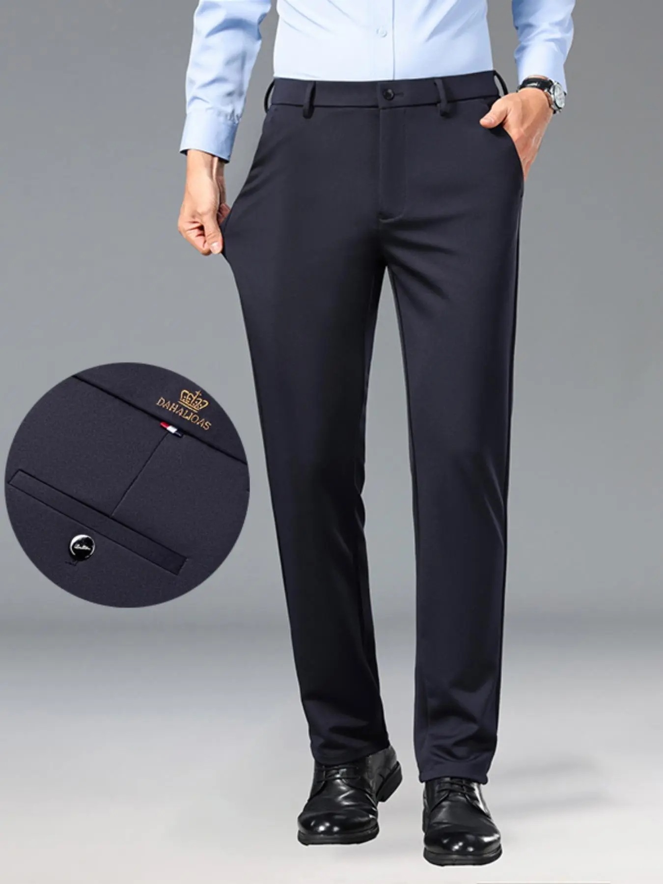 | 材料/素材 | メンズ ゆったりストレート エラスティック素材のフォーマルパンツ、シワになりにくい快適なビジネス向けカジュアルファッションワークウェア | ||