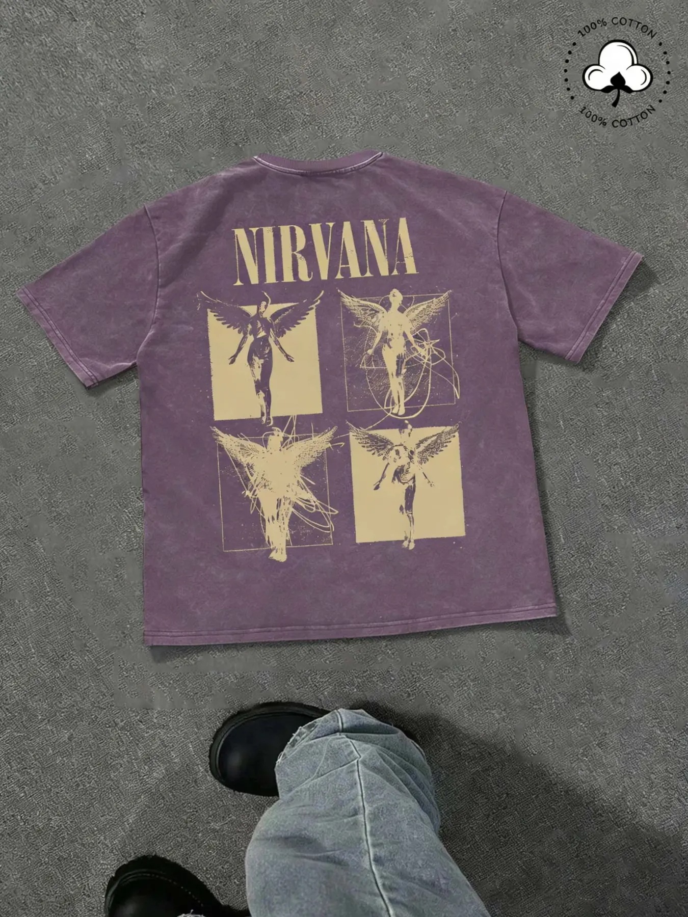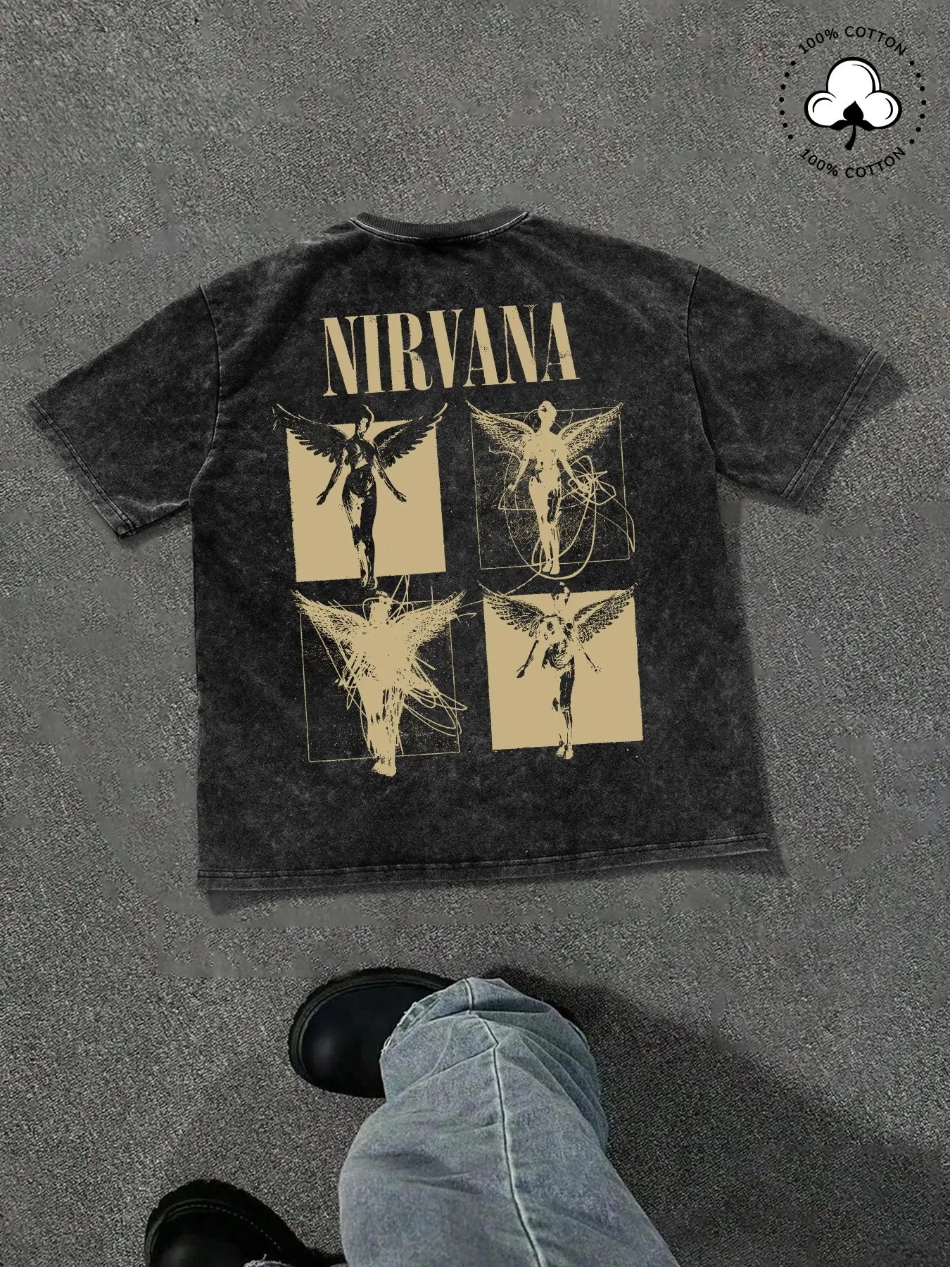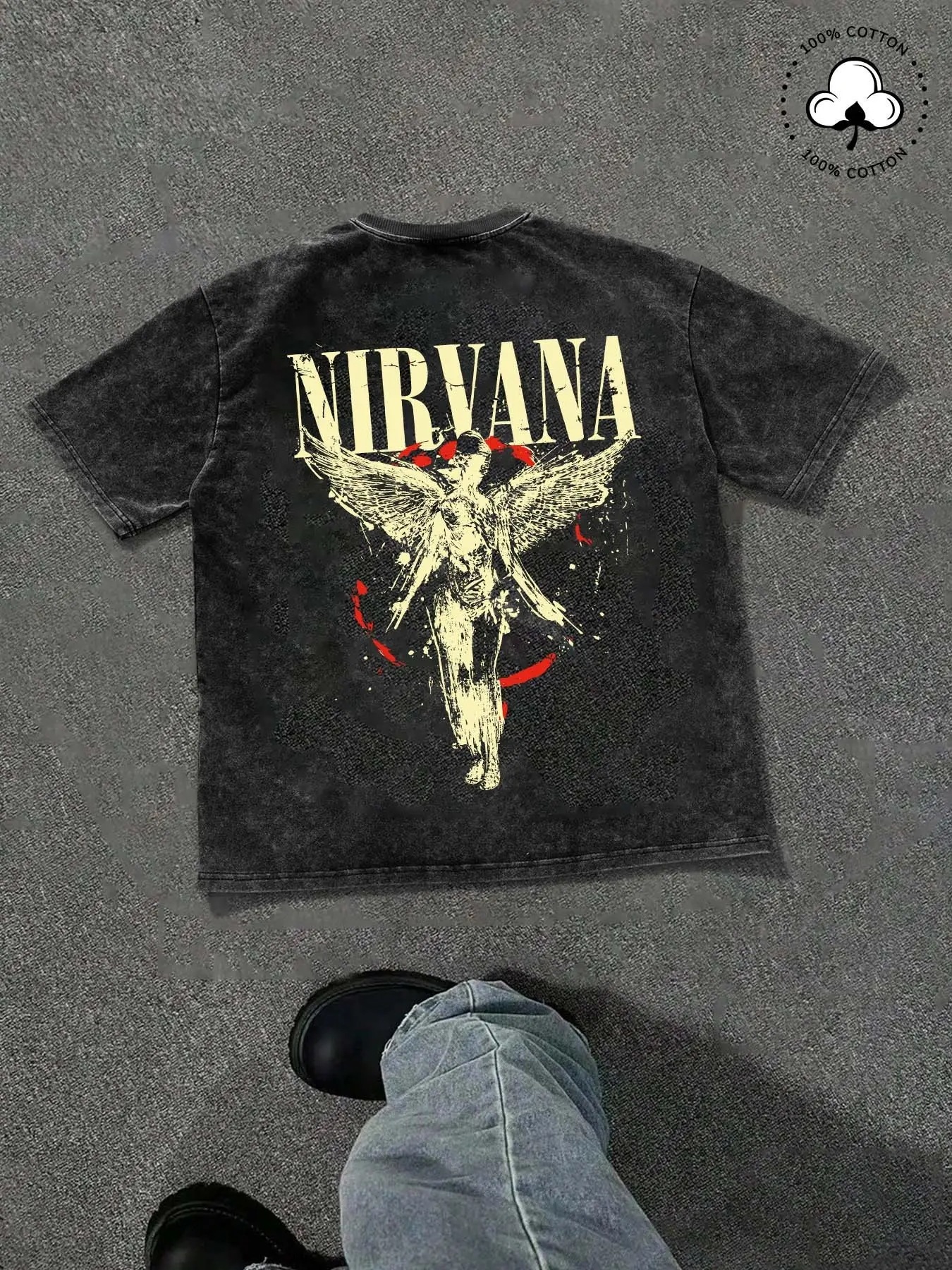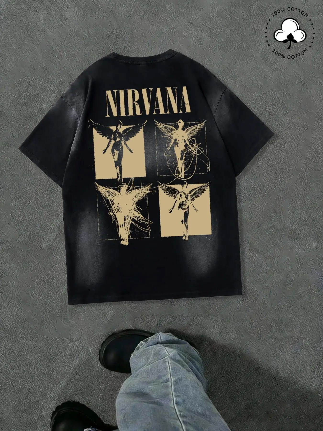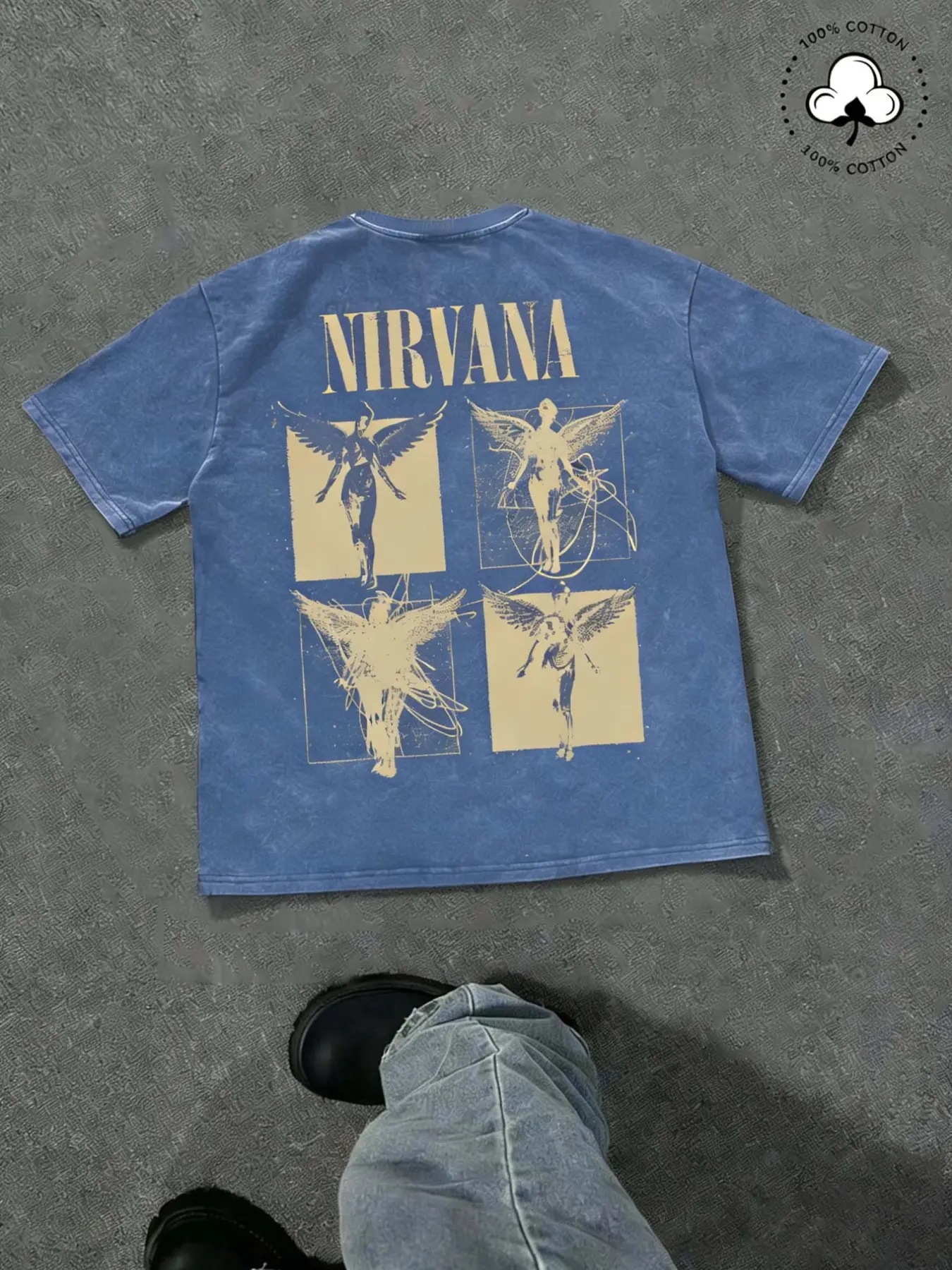 | 材料/素材 | [ヴィンテージウォッシュデザイン]:使用感のある見た目のために、ヴィンテージウォッシュデザインを採用。ワードローブに個性と独自性が加わります。 [ユニセックスフィット]:男女兼用のデザインで、すべての性別に適した多様なフィットを提供します。 [100%コットン]:100%コットン製で、通気性・快適性がオールシーズンを通じて確保されています。 [ニルヴァーナバンドプリント]:ニルヴァーナバンドのプリントを紹介し、ファンや音楽にインスパイアされたファッションを愛する人々に最適です。 [半袖]:半袖が付属しており、暖かい気候や普段使いに最適です。 | ||
