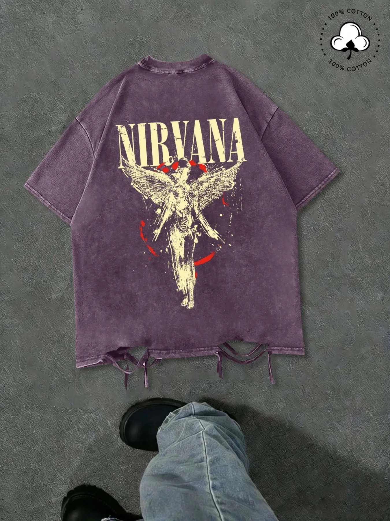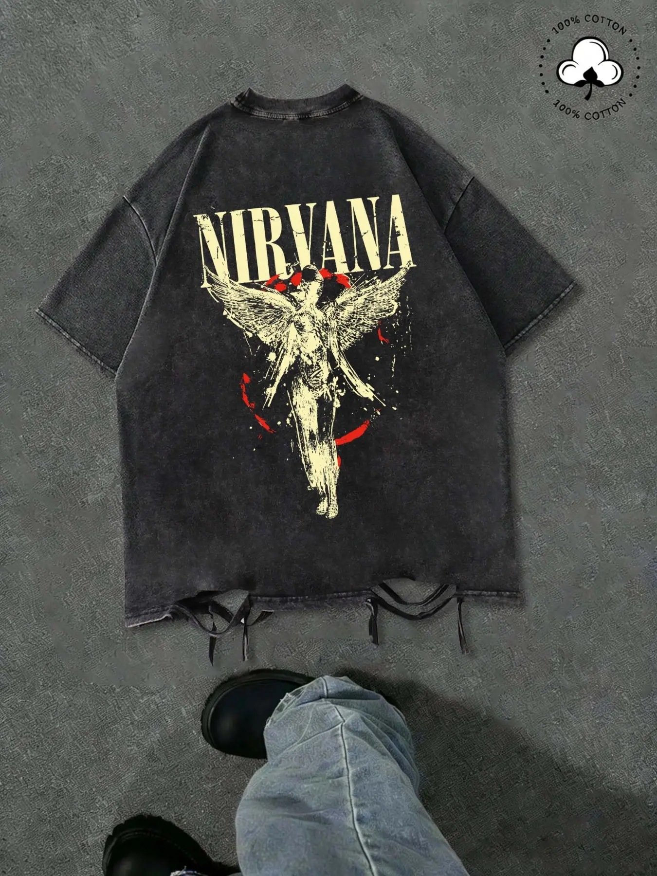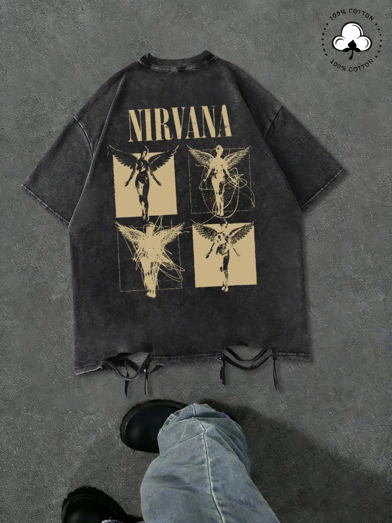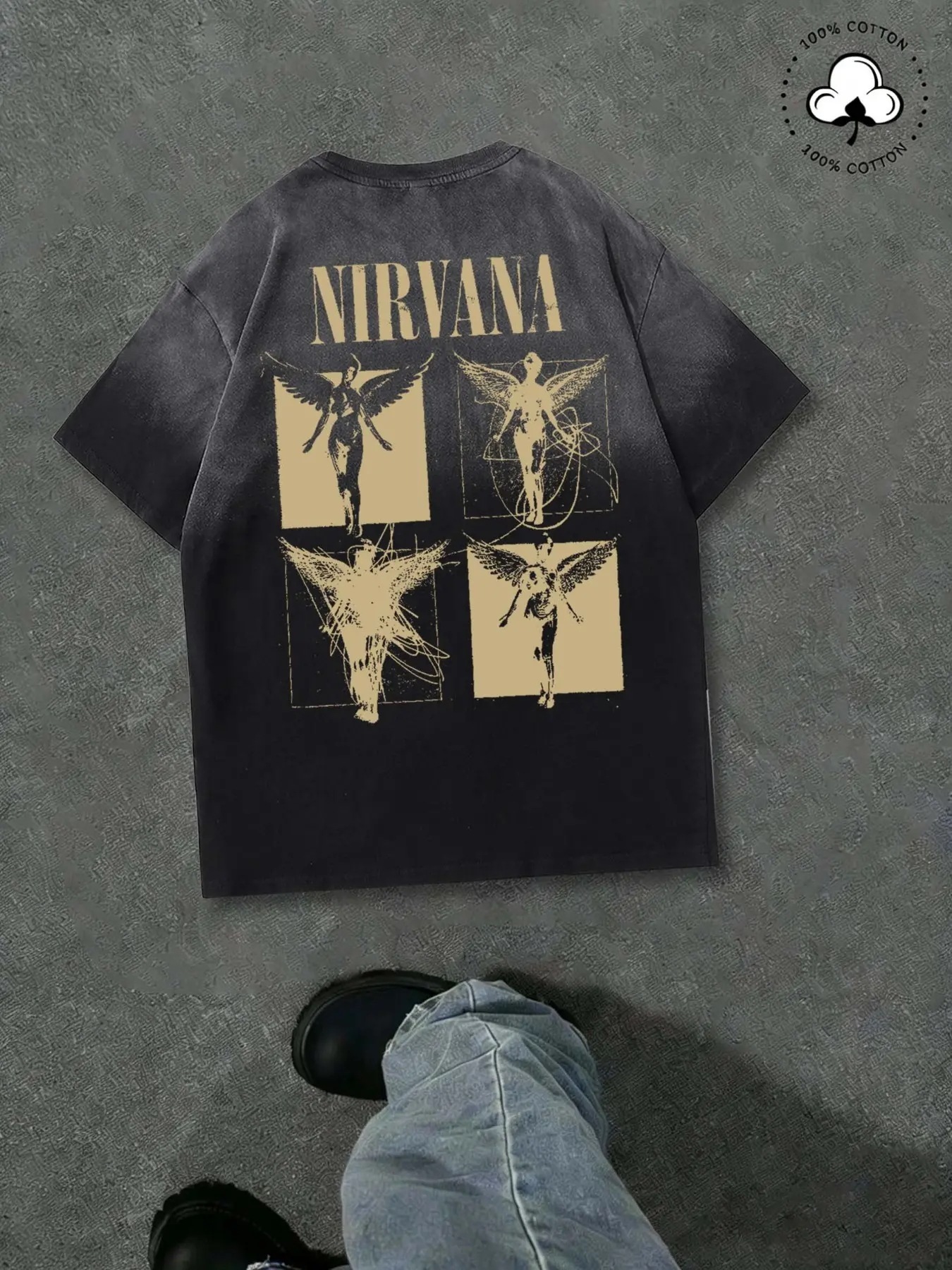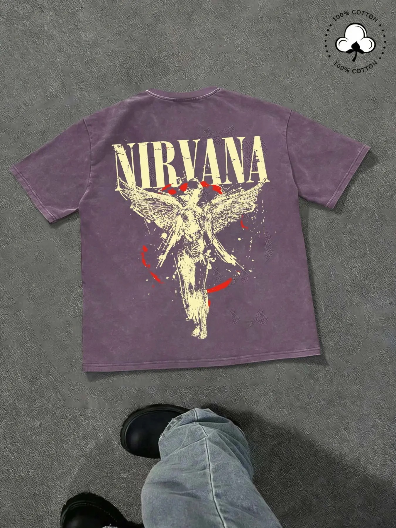 | 材料/素材 | [ヴィンテージウォッシュデザイン]:使用感のある見た目のために、ヴィンテージウォッシュデザインを採用。ワードローブに個性と独自性が加わります。 [ユニセックスフィット]:男女兼用のデザインで、すべての性別に適した多様なフィットを提供します。 [100%コットン]:100%コットン製で、通気性・快適性がオールシーズンを通じて確保されています。 [ニルヴァーナバンドプリント]:ニルヴァーナバンドのプリントを紹介し、ファンや音楽にインスパイアされたファッションを愛する人々に最適です。 [半袖]:半袖が付属しており、暖かい気候や普段使いに最適です。 | ||