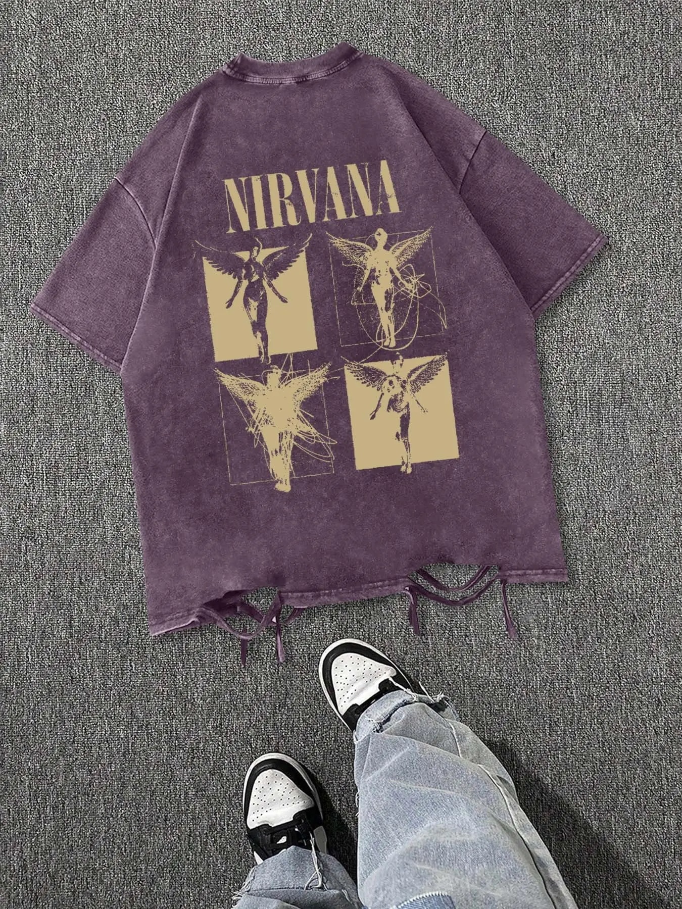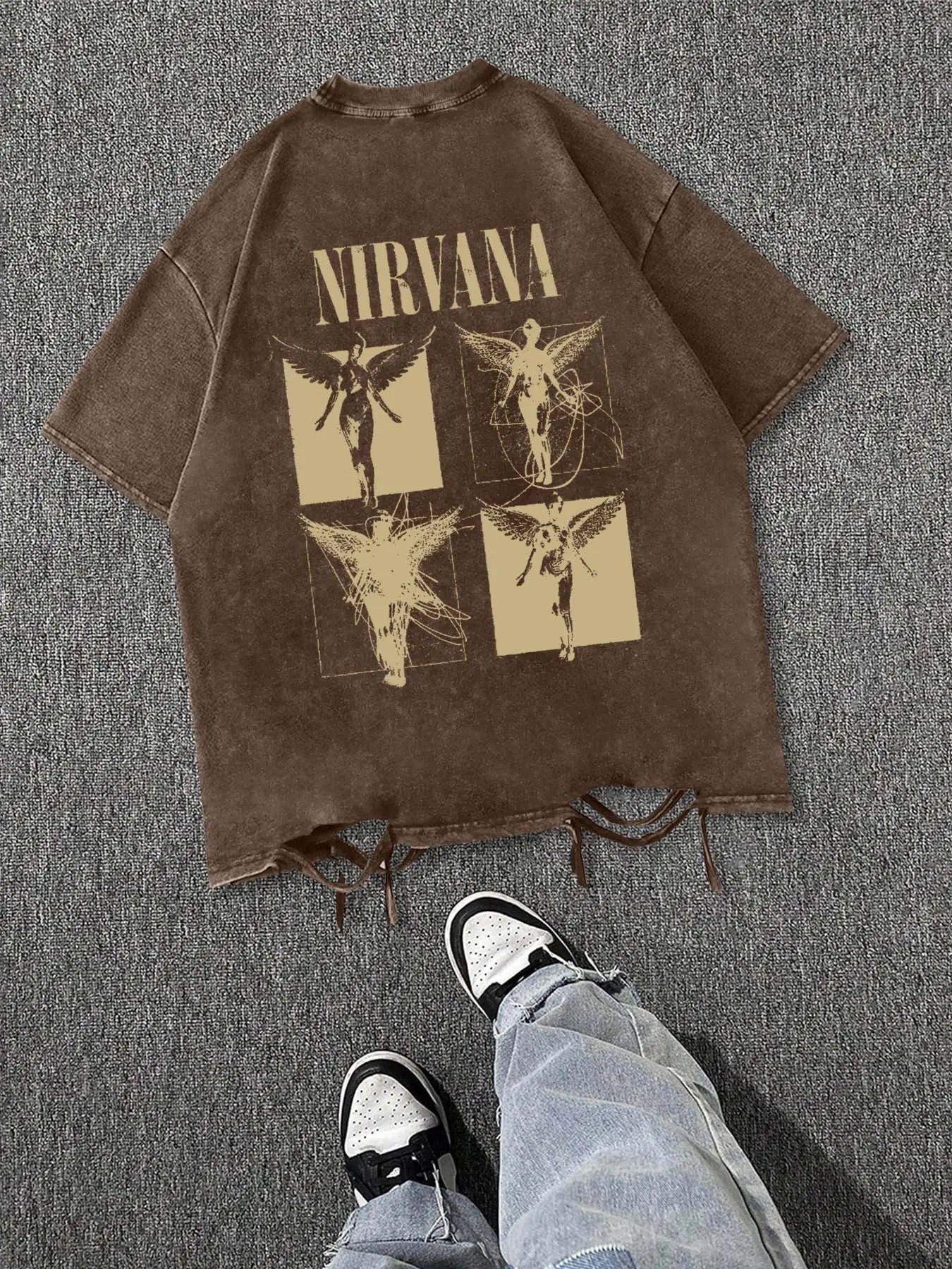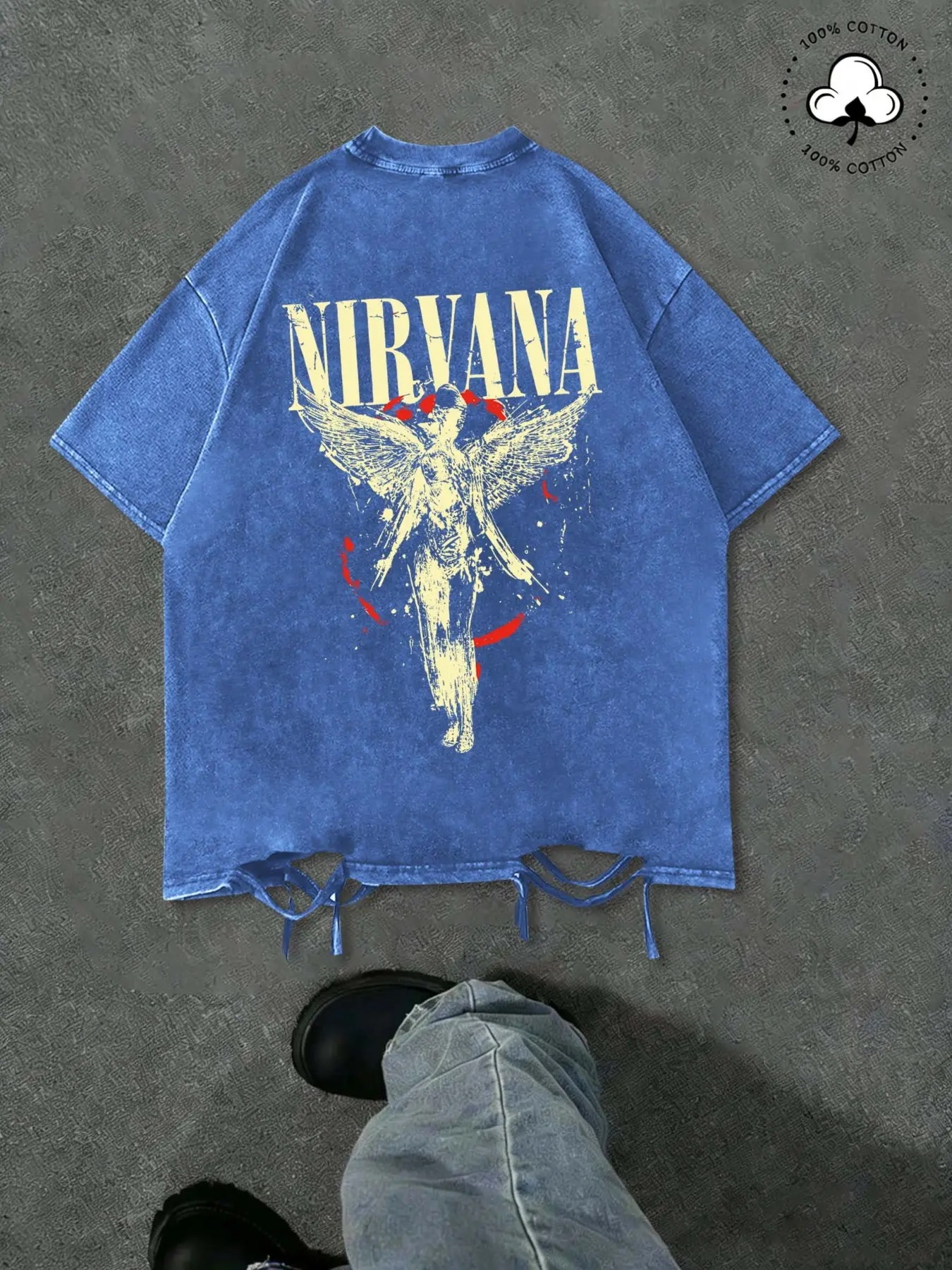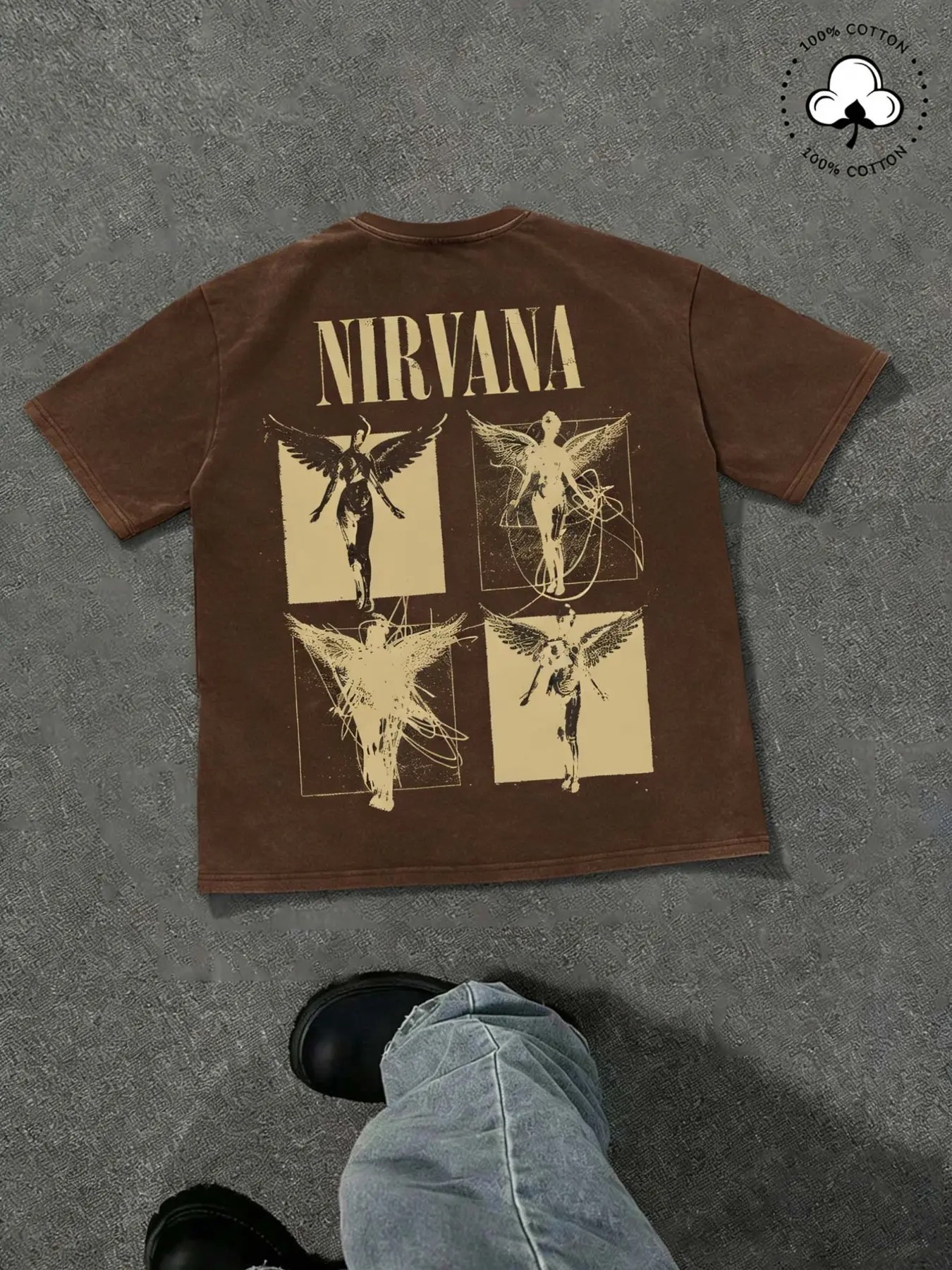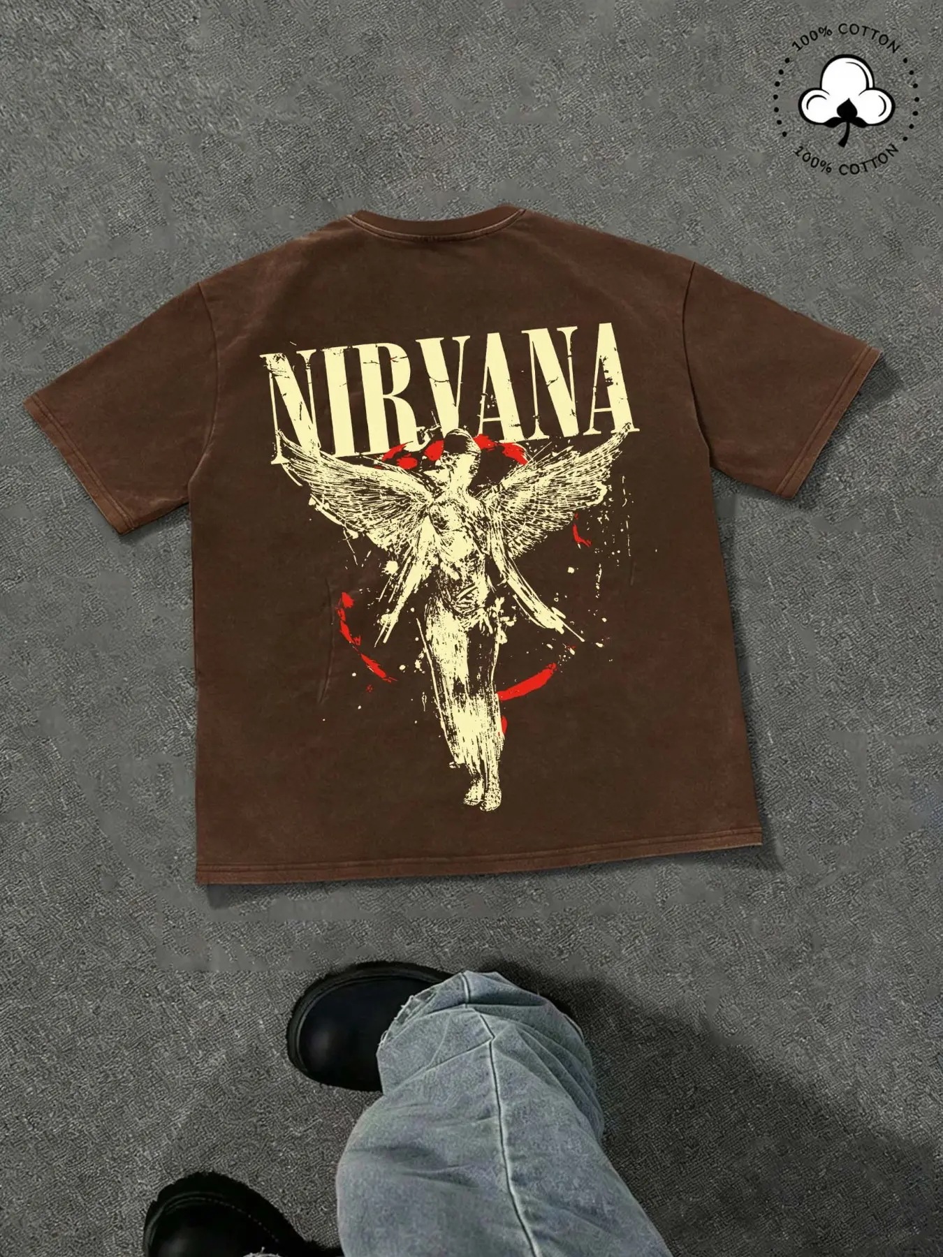 | 材料/素材 | [ヴィンテージウォッシュデザイン]:使用感のある見た目のために、ヴィンテージウォッシュデザインを採用。ワードローブに個性と独自性が加わります。 [ユニセックスフィット]:男女兼用のデザインで、すべての性別に適した多様なフィットを提供します。 [100%コットン]:100%コットン製で、通気性・快適性がオールシーズンを通じて確保されています。 [ニルヴァーナバンドプリント]:ニルヴァーナバンドのプリントを紹介し、ファンや音楽にインスパイアされたファッションを愛する人々に最適です。 [半袖]:半袖が付属しており、暖かい気候や普段使いに最適です。 | ||