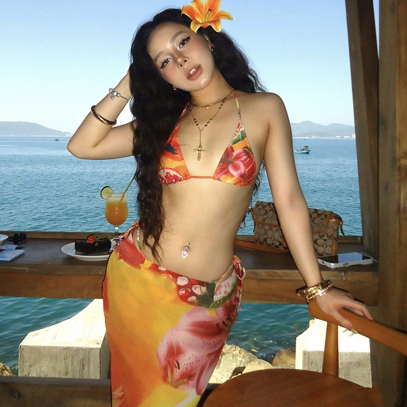 替换【迅速な出荷】2026 プリント ビキニ 3点セット セクシー 女性 ロングスカート 紐 水着 リゾート スイムウェア7941639