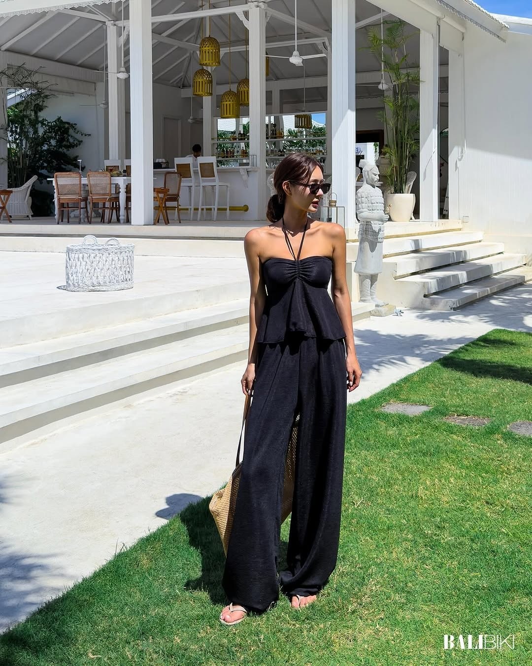 替换【迅速な出荷】女性 リラックス ノースリーブ タンクトップ ハイウエスト ワイドパンツ ビキニ 3点セット 水着8101655
