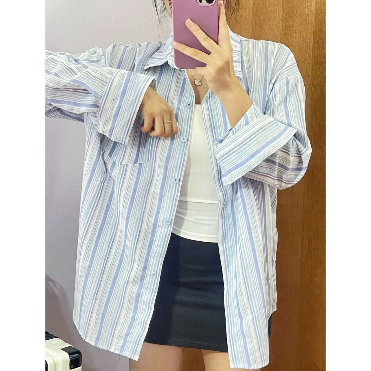 青 ストライプ 日焼け止め シャツ 薄手 シャツ アウター レディース ゆったり リラックス 長袖 カーディガン アウター トップス1343