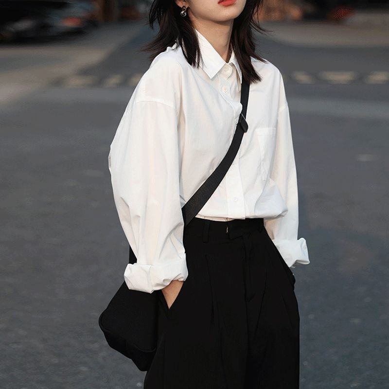 白 シャツ レディース 学生 インナー アウター ゆったり 長袖 アメリカン シャツ レディース おしゃれ インナー トップス1412