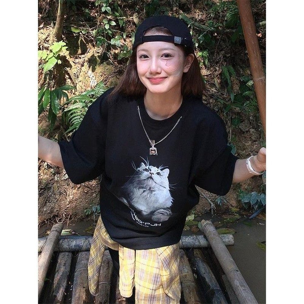 高街大きいサイズプリント半袖 T シャツ ルーズ風 レディース人気綿素材