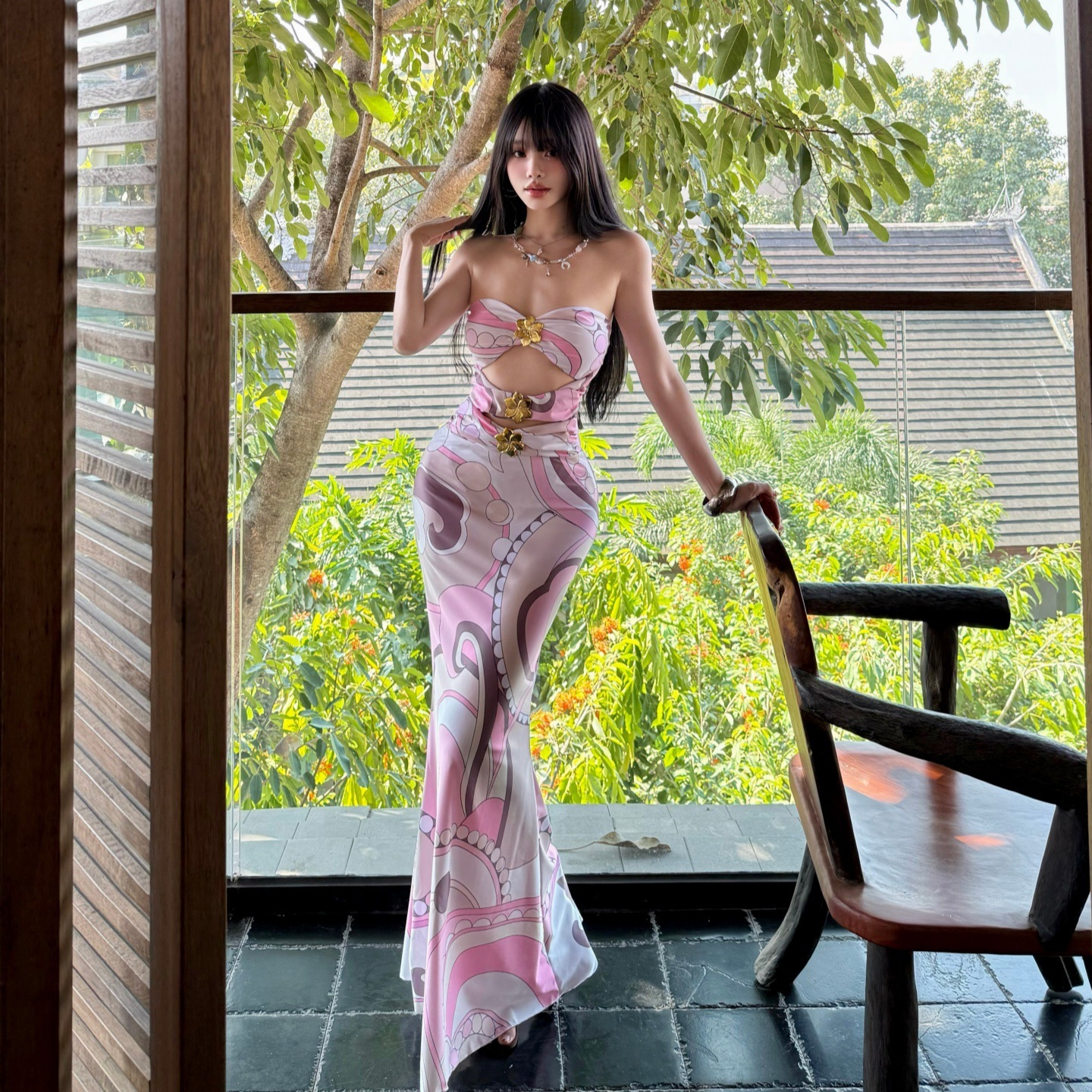 替换【迅速な出荷】2026 個性的 ワンピース チューブトップ 水着 ロングスカート プリント セクシー 女性 リゾート 写真映え359359