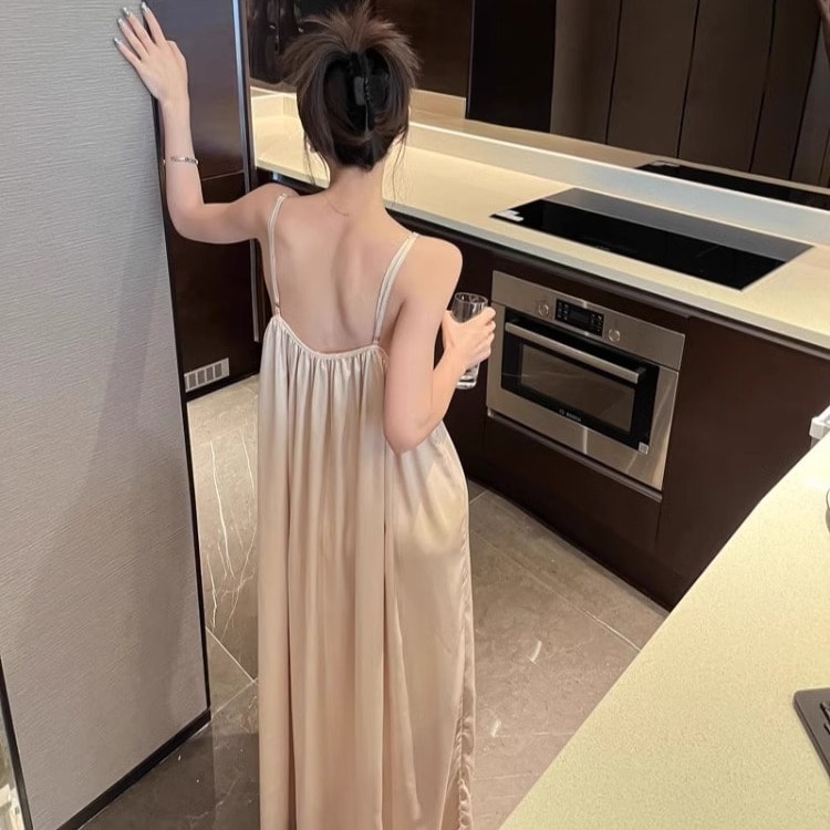 風 Vネック キャミソール ネグリジェ 女性 2026 高級 セクシー アウター可能 背中見せ ルームウェア 服