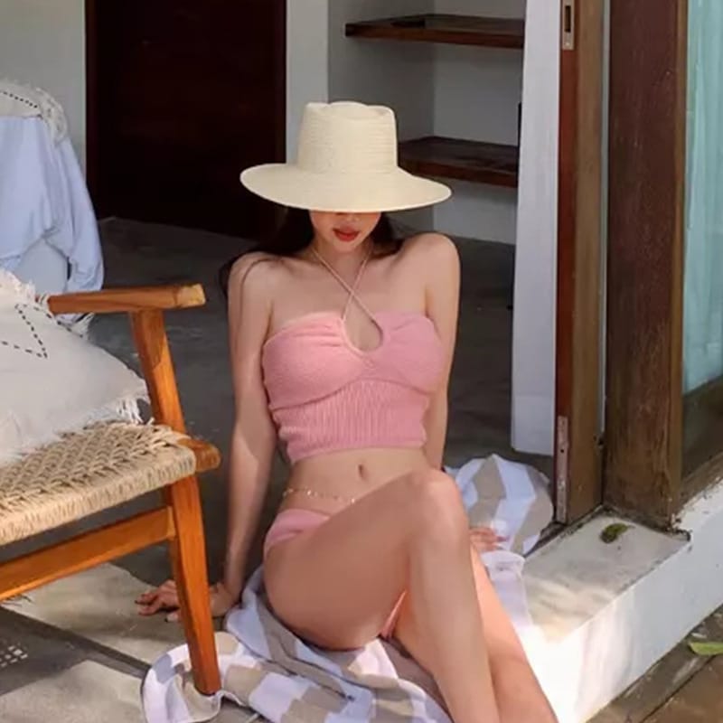 替换【迅速な出荷】ラグジュアリー レディース ウェーブ生地 大小胸 ホルターネック ストラップ セパレート セクシー スイムウェア 水着8441689