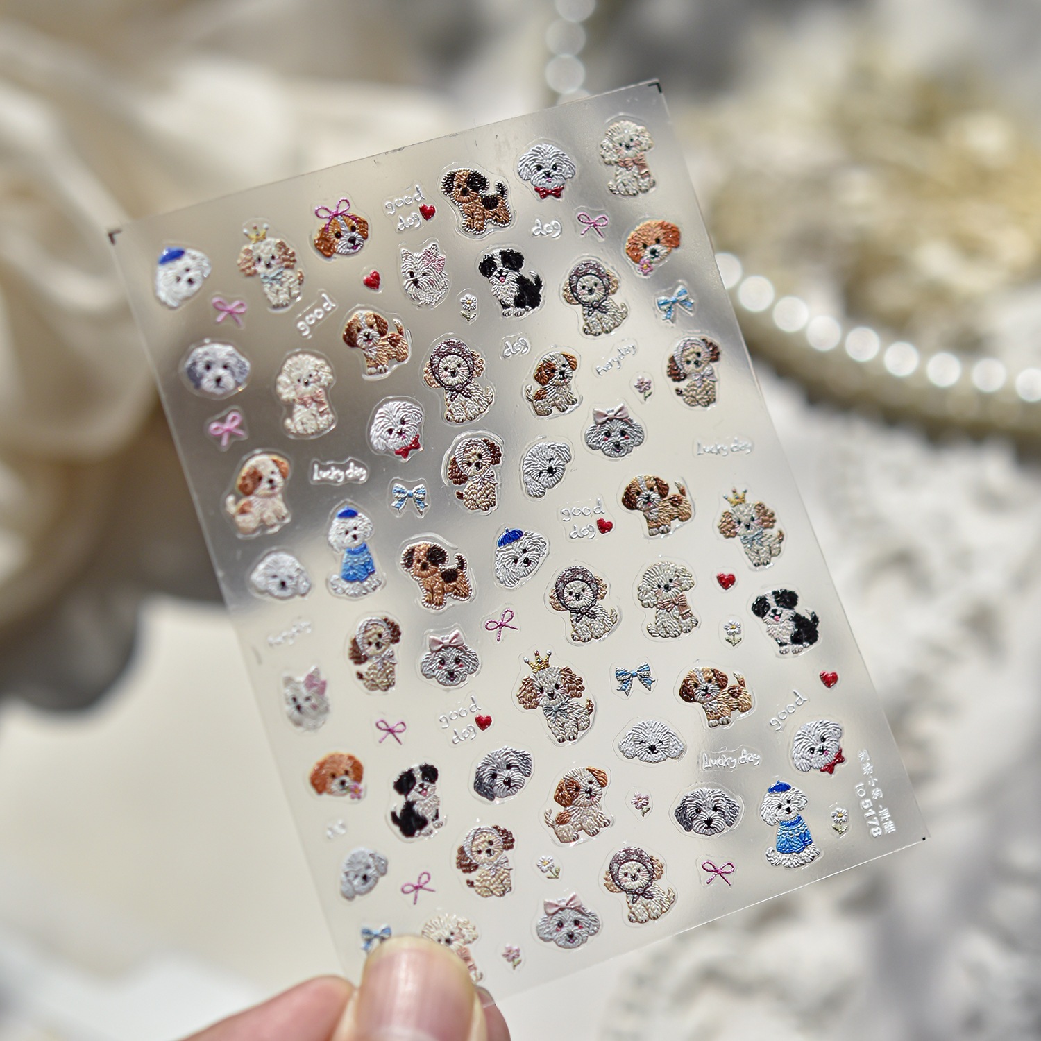 【速達!】エンボスが可愛い刺繍子犬バレエ風ネイルシール爪貼り手帳キャラクター装飾