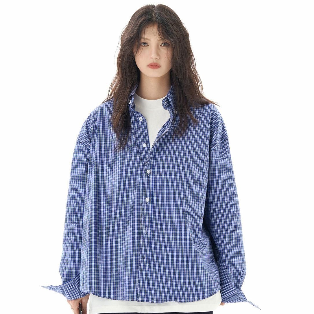 青 チェック シャツ レディース 長袖 アウター ゆったり ジェンダーレス ファッション 高級 レトロ シャツ カーディガン アウター651327
